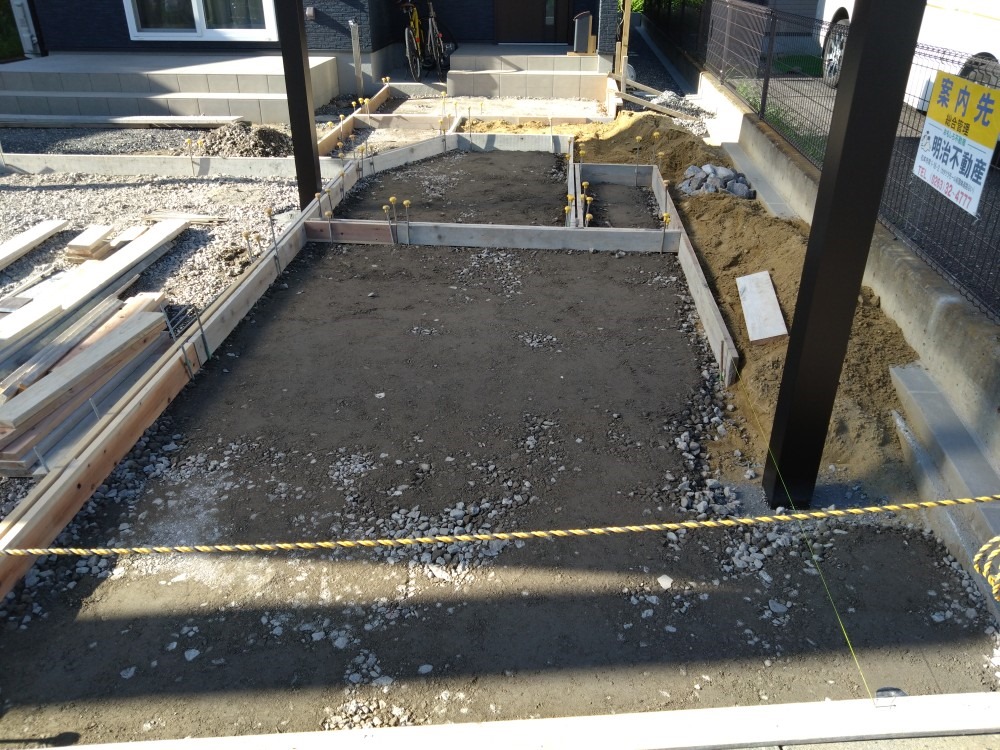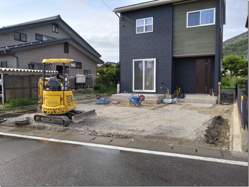 こちらの現場では、スキ土、整地作業を行いました。今回スキ土箇所がブロックの近くだったので重機がブロックに接触しないようスキ土していきます。ギリギリなところはスコップ等で掘っていきます。整地では何か所かに糸を貼り全体の高さが均一になるよう整地していきます。