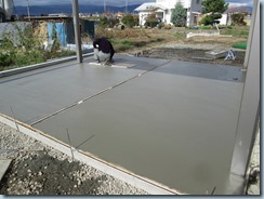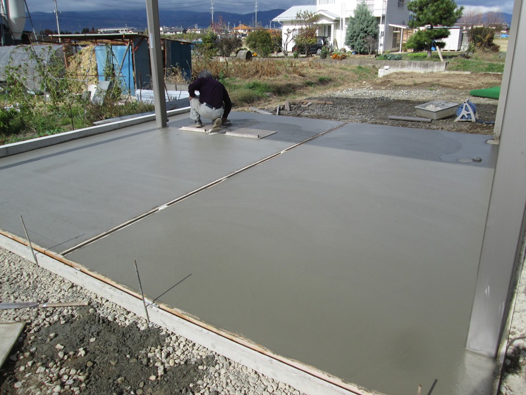 施工現場レポート 4月16日(土) 土間のスリットにクリスタルグレインを入れました。色は海蘭石です 石を入れただけと違い、こぼれることがありません 4月18日(月) 門柱には仕上げのトップコートを塗り、養生をはがしました。ガラスブロックやジュエルグラススリム、えくすてんどの100角がようやく見えるようになりました 土間を打ちました テラスのタイルを貼りました
