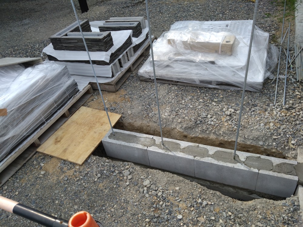 別の箇所でもノヴェルボーダーを使った門柱を積むため基礎ブロックを積みました。