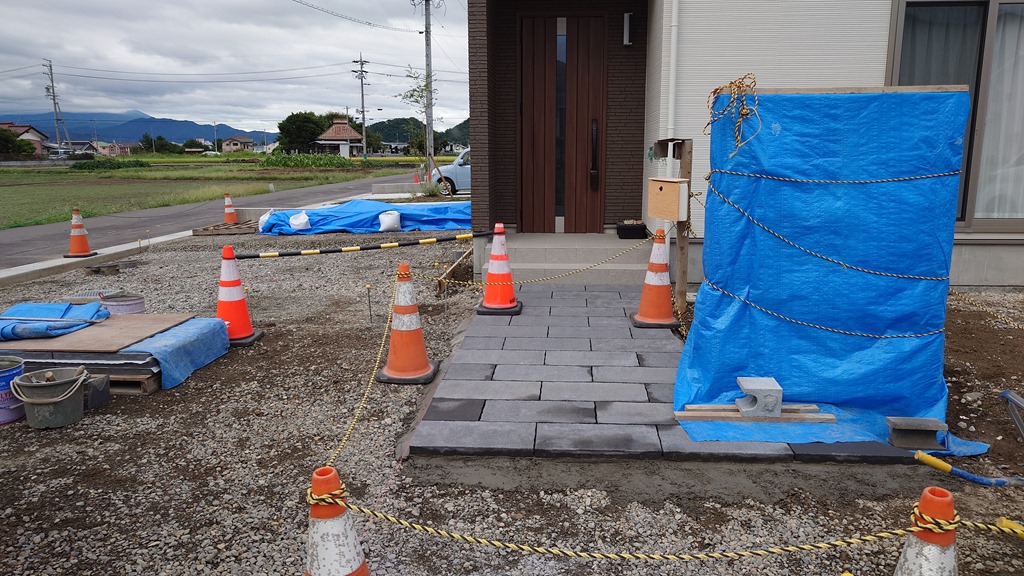 2024年1月26日 300角タイル貼り、アプローチ(通路)、アルモ、エクステリア、エクステリア工事、テラス、ファイバーレジン、フェンス、ブロック積み、ベースコンクリート打ち、ポール立て、化粧ブロック・レンガ積み、外構工事、天然石貼り、未分類、長野市 toledo