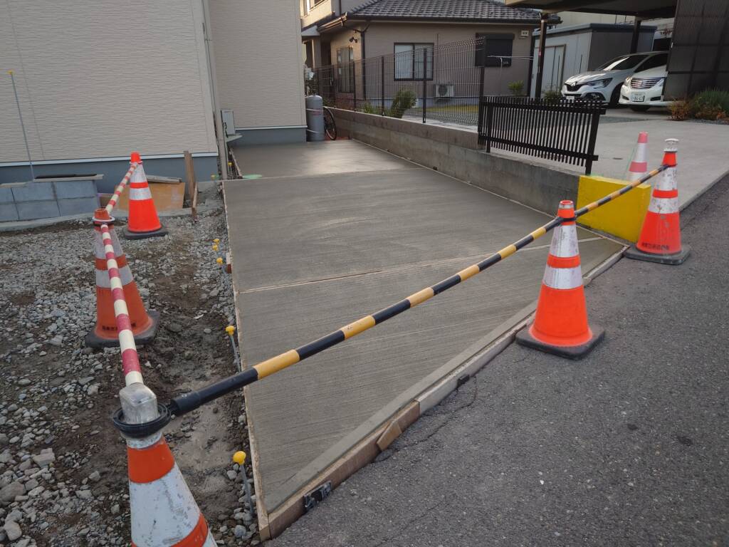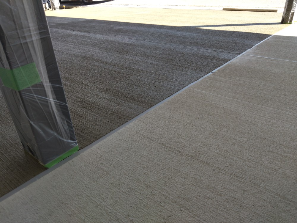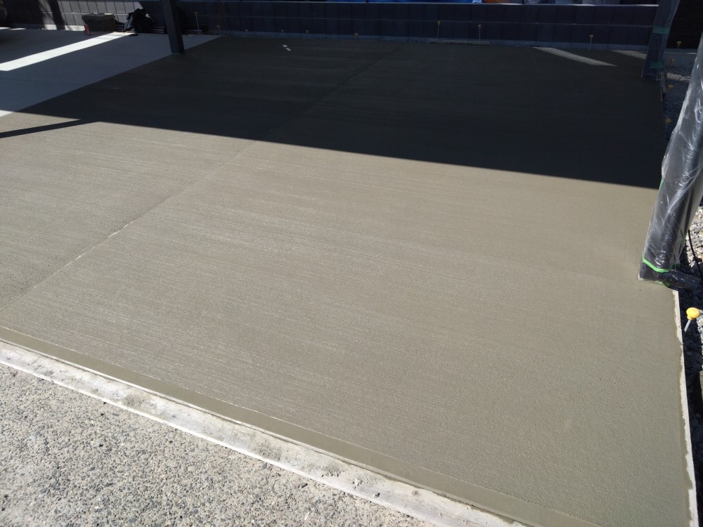 なので今回は道路際から奥へ登っていくように仕上げに入りました。作戦通りに硬化が進んでいく順に均していくことが出来ました。現場によって環境は異なるので臨機応変に施工していくことが大事です。