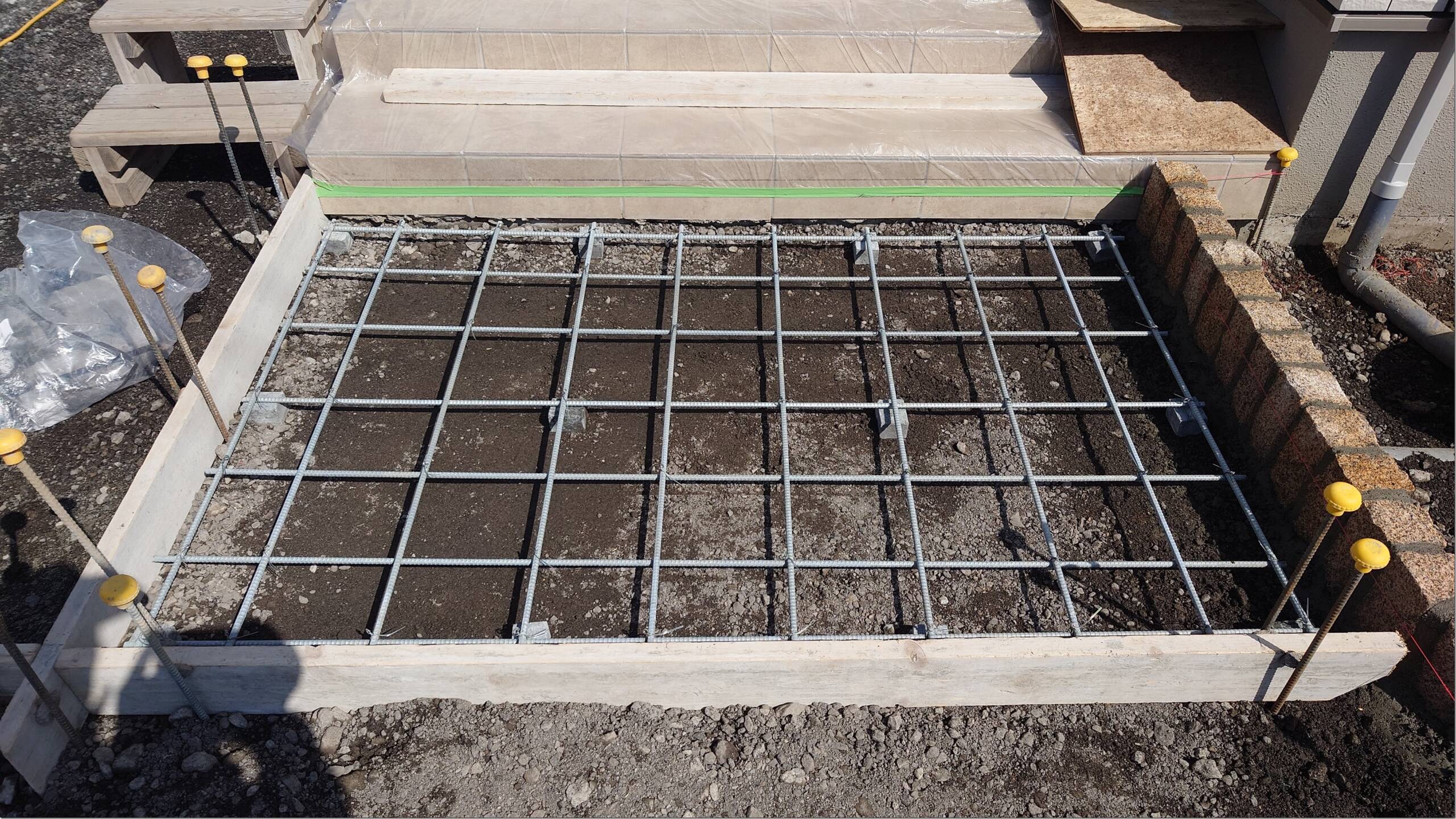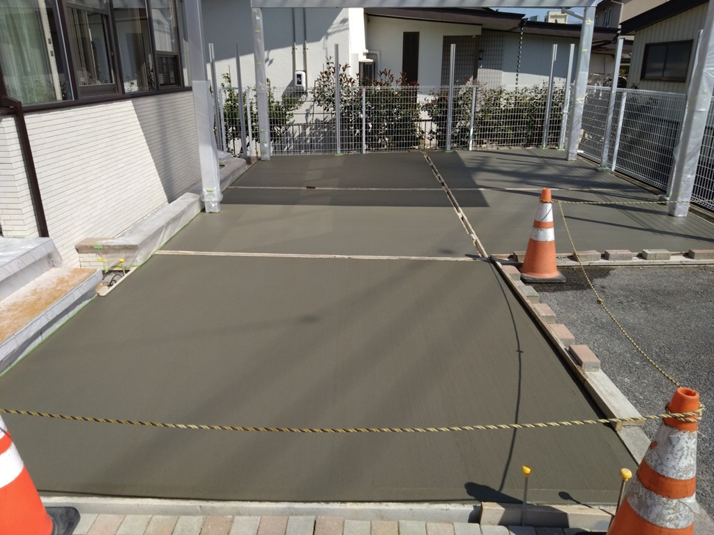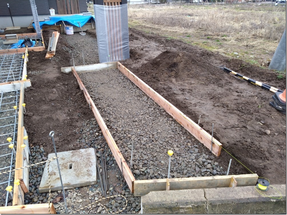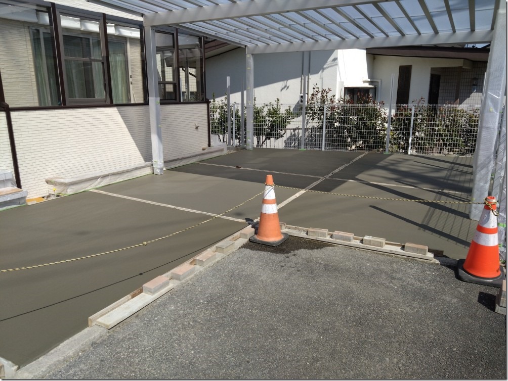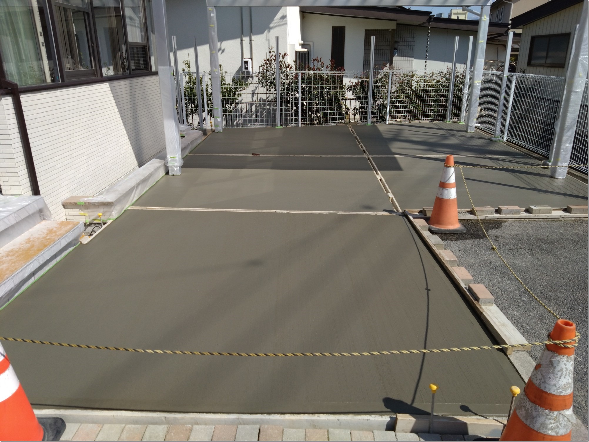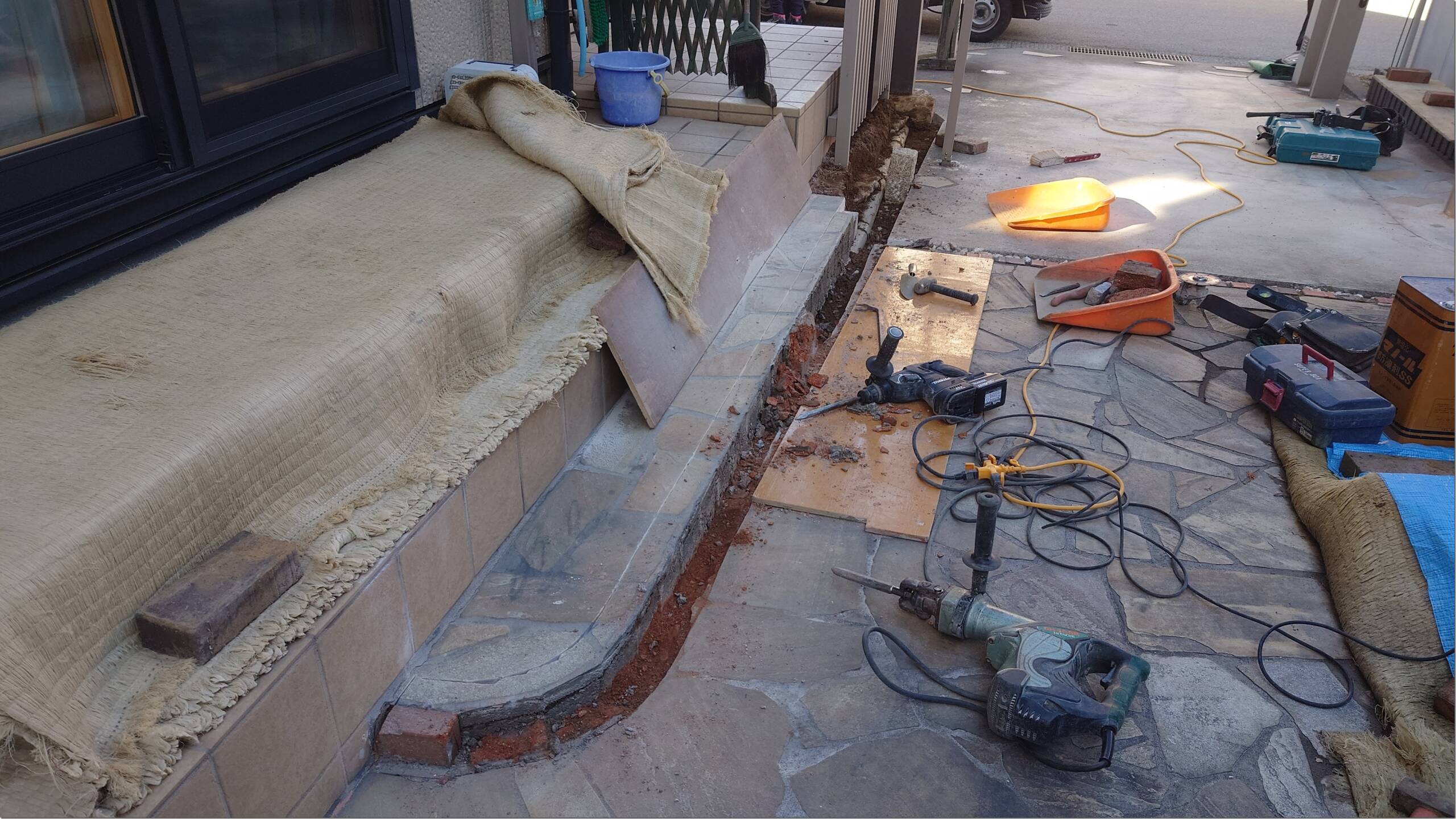 雨が降ると作業に影響がでますが良い一面もあります。概ね完成している現場ではサウザンドブリック(レンガ)や植栽帯が濡れて色がハッキリ見えます。ランダムに敷き詰めた様々な色のレンガが雨に洗われて綺麗に見えますね。ランダムとは言いましたが配置のバランスも職人が調整しながら行いました。大きさも異なるので偏らないように。水に濡れると硬化する特殊な珪砂を入れているため雨による流出も防いでいます。