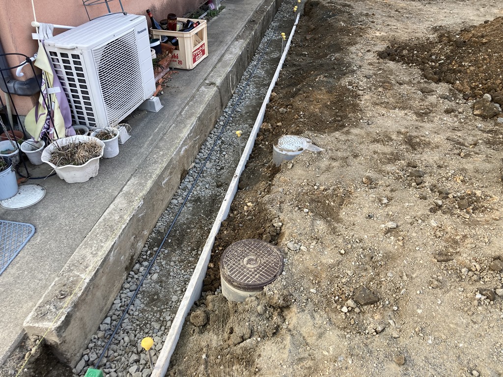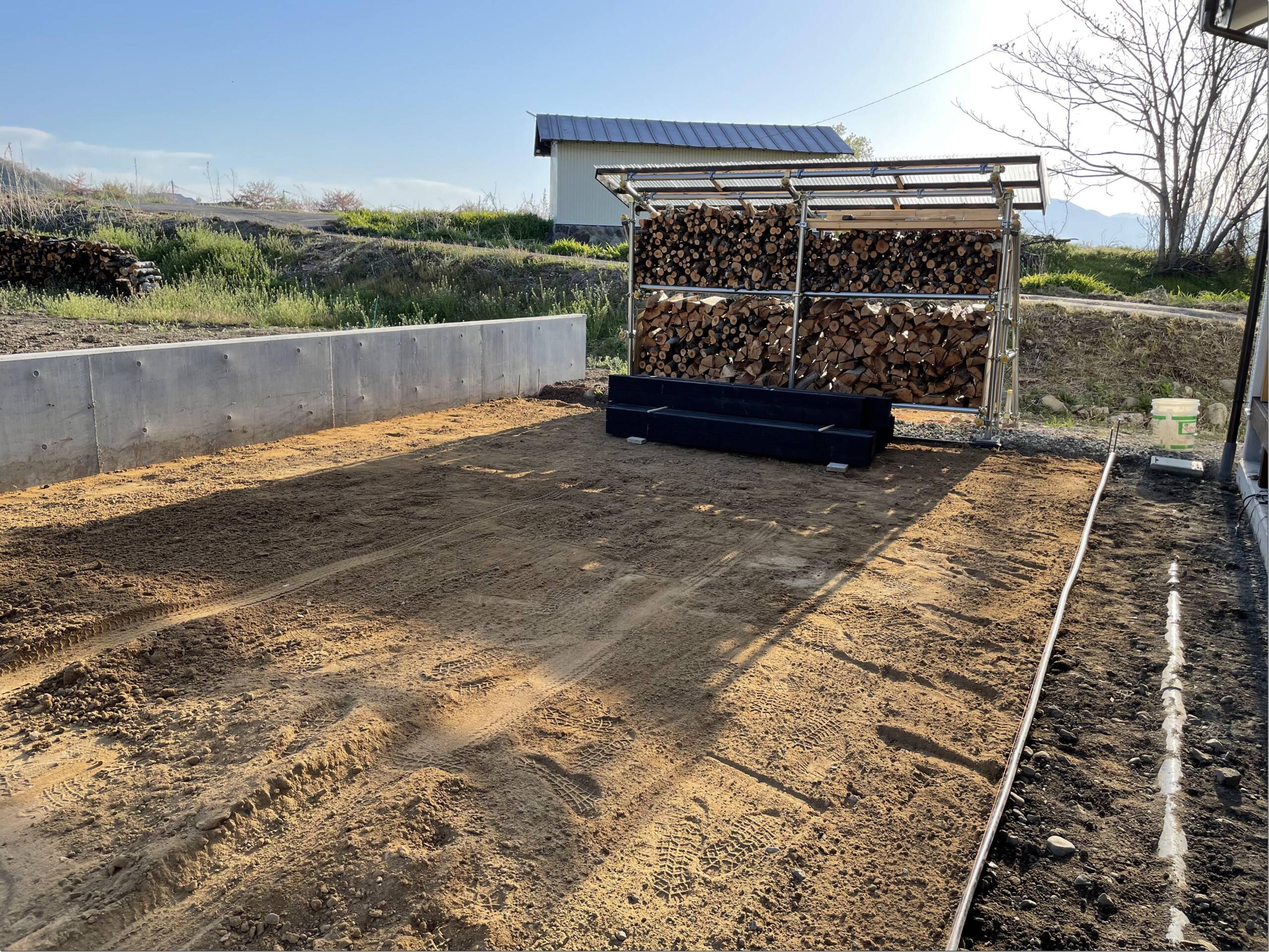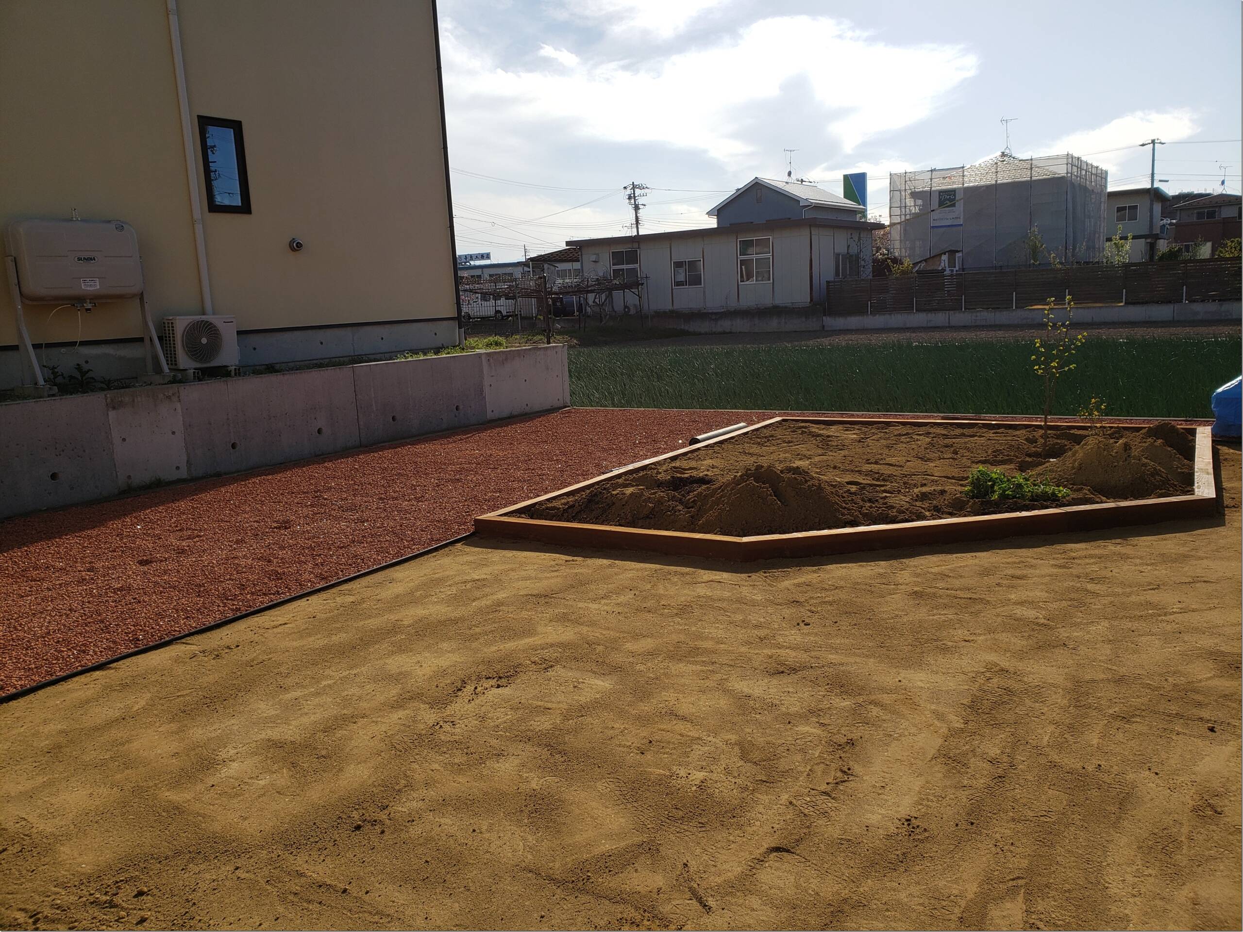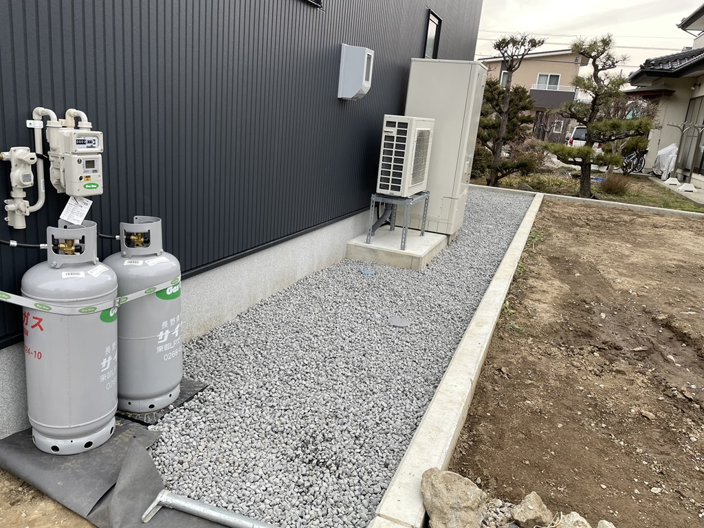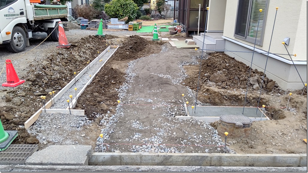 テコラと土間下地 こちらのお宅では防草シートを敷きテコラを入れました。 こちらのお宅ではスキ土作業をして土間の下地を作業をしました。 今日の午前中はとても暑かったですがお昼過ぎから激しい雨が降りました。雨の中の作業はいつも以上に体力を使うので仕事の帰りに温泉でも入って冷えた体と疲れを癒したいな~(笑) 長野市 外構 エクステリア