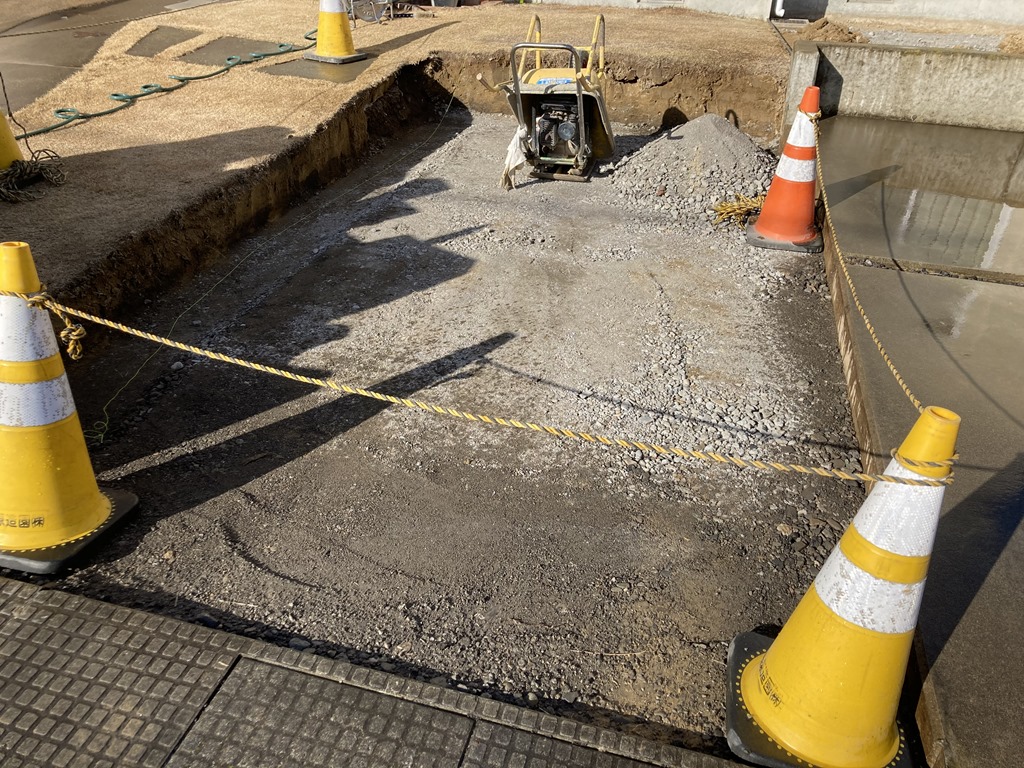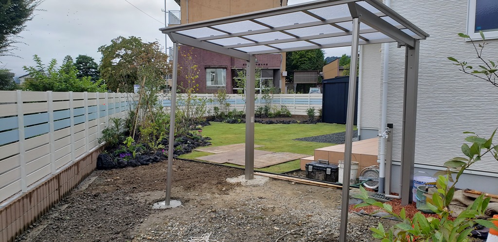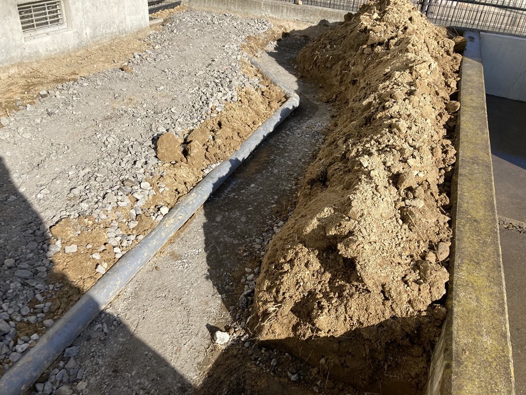 こちらのお宅では境界沿いとスロープの基礎のベースのスキ土をして、下地を組み始めました。