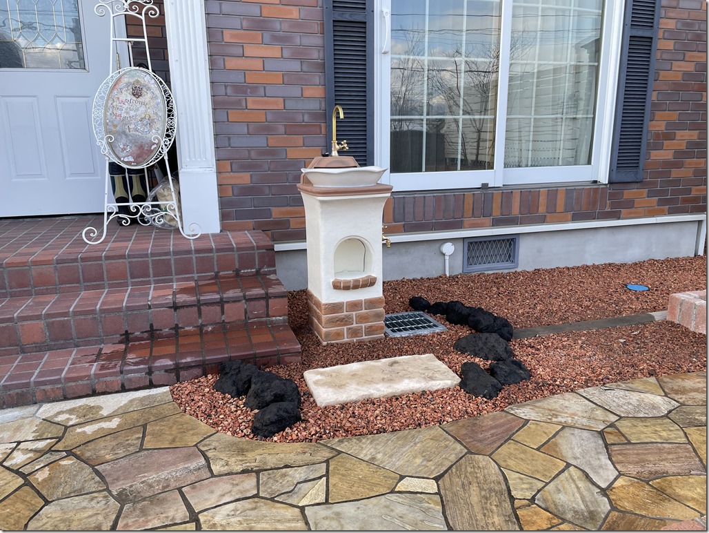 こちらのお宅では建物周りに防草シートを敷き、5号砕石を入れて留めにはフチオモイを据えました。
