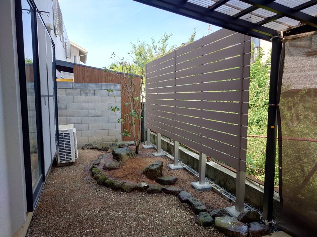 今年の1月頃から着工していた現場がいよいよ完成間近となりました。弊社はコンクリートの品質上の理由から冬期の土間コンクリートの打設は行いません。その間お客様のご協力とご理解の上でお待ちいただいていますが、4月に入り品質を確保出来る気温になってきたのでお待ちいただいているお客様から順に土間コンクリートの打設を行っている状況です。玄関前にはファイバーレジンで作った丸3っつを埋め込むなども。近隣様との目隠しのためF&Fのマイティウッドを設置しました。曖昧だった道路境界と既存U字構との納めも綺麗に仕上げることが出来ました。ただ、既存基礎を切り落として補修をかけたその日に近所のネコが足跡を付けてしまったため補修の補修をすることに。