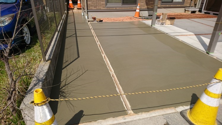 こちらの現場では土間の型枠を組み配筋をしました。そして道路沿いのブロック上にハイグリットフェンスを取り付けました。