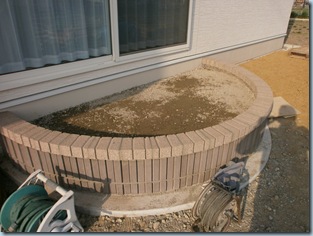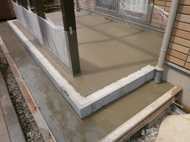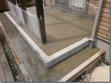 門柱ガラスブロック N様邸 4月17日(水) 晴れ 長野市N様邸施工現場 門柱にガラスブロックを3個組みこみました 半円形のテラスに砕石を入れました ベースコンクリートの下地を作りました エクステリア 長野 「トレド」