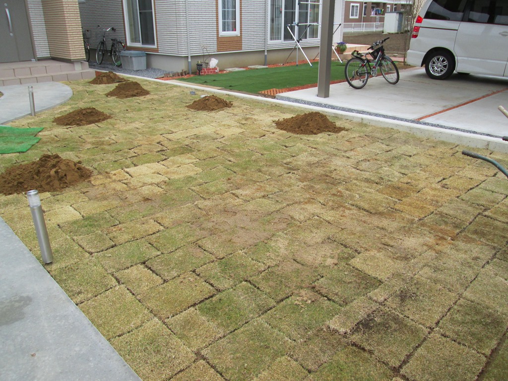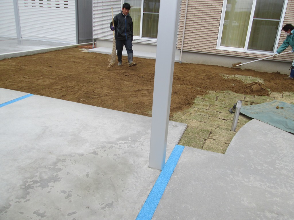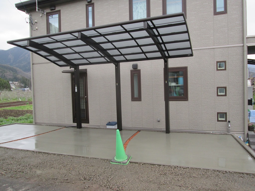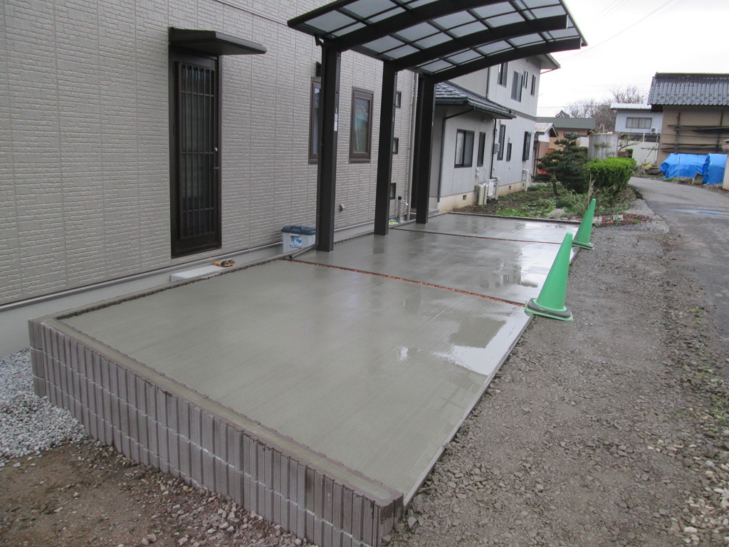 2台分のカーポートを設置し、床の土間コンクリート打ちの枠を組んで下地を作りました
