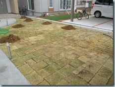 2台分のカーポートを設置し、ブロックにフェンスの柱を立てました。