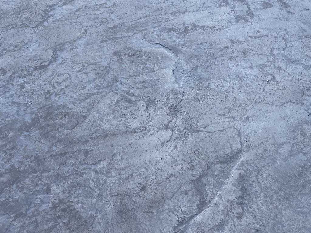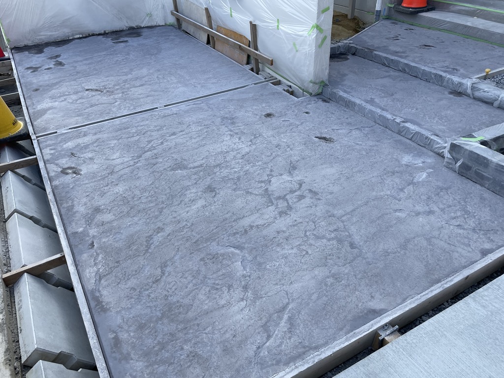 昨日ブログに載せられなかったので今日載せますが、スタンプコンクリートです。普段石畳風のアシュラや木目調なんかが多いですが、今回は一枚岩風のシームレスになります。まだ色の調整をしていませんが、下地にシルバーグレー、陰影をつけるのにライトグレーで色味を少し変えるとこんな感じになります。下地自体は白っぽい感じなので調整すれば写真よりもう少し白っぽくなります。