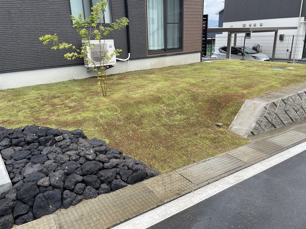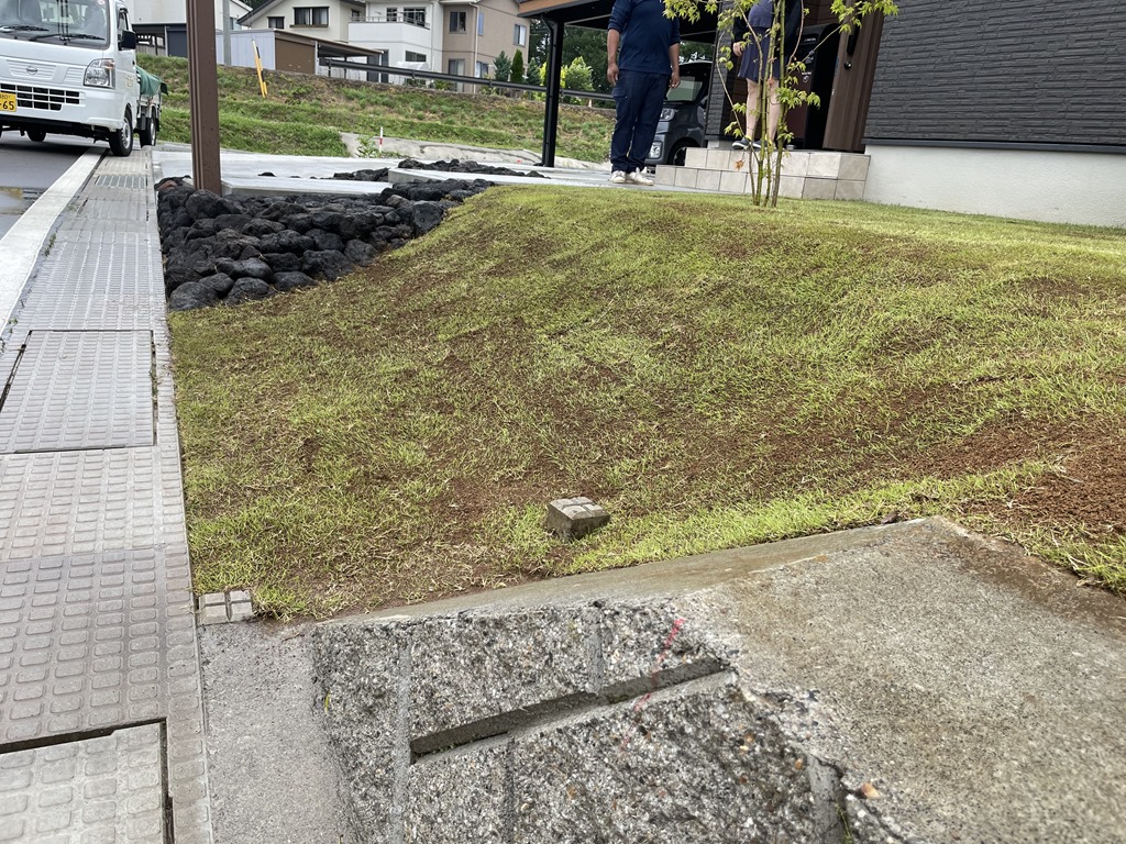 そんなわけですが、仕事をするにはちょっと嫌ですが芝を貼るにはいい天気でした。凄い暑くて天気の良い日だと、芝が乾いて一回り縮こまってしまったり根っこが乾燥して枯れやすくなるので、今日ぐらいの方が却ってよかったりします。