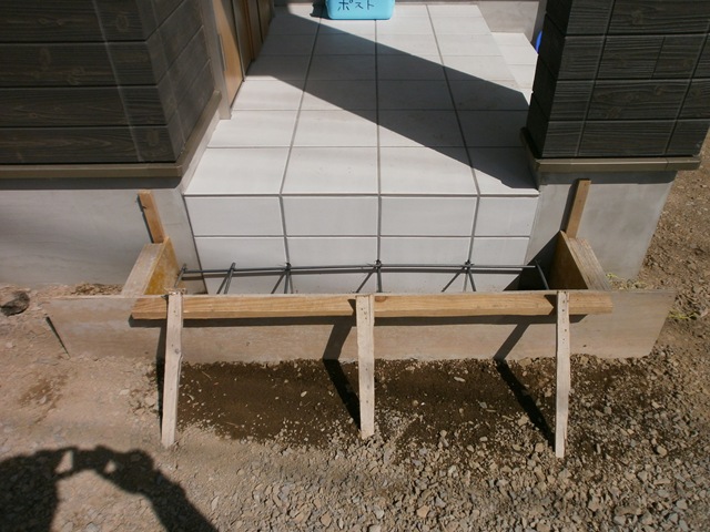 門柱下塗り、スタンプコンクリート