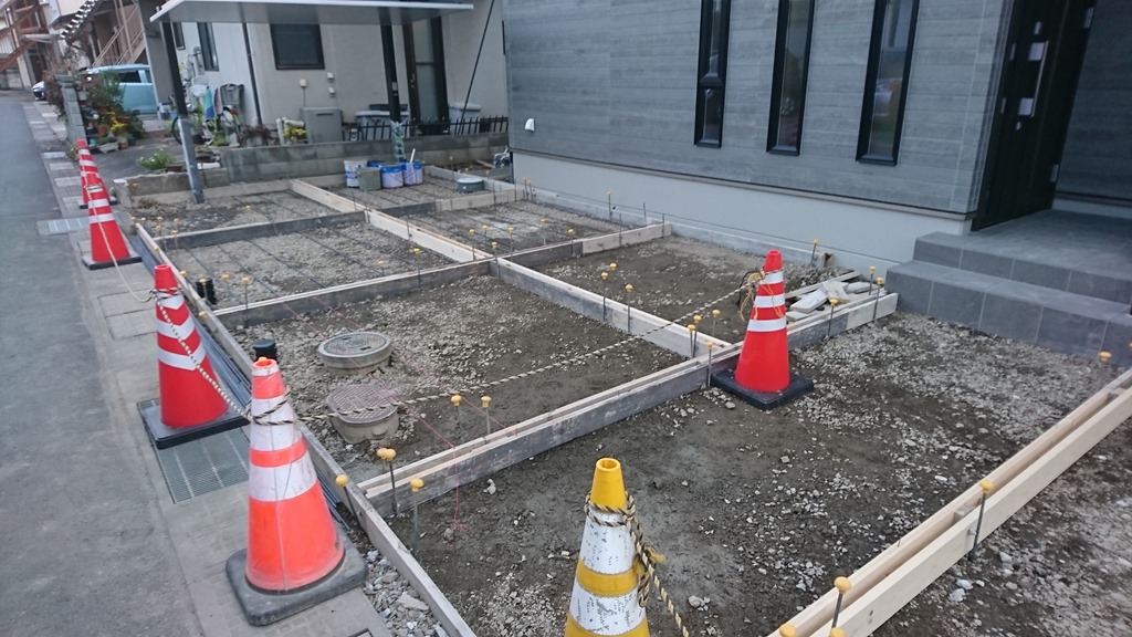 ポール立て、土間下地 11月11日(木) この現場では、ポールをたくさん立てました!この量のポールを立てるのに、たくさんの体力とガムテープを失いました、。帰ったら、いっぱいポッキーたべて疲れを癒したいと思います! こちらのお宅では、土間の下地をつくりました! 昨日はとても寒く大変でしたが、今日は暖かくて作業していて気持ちがよかったです! 明日行けば休みになるのでがんばります!! 長野市 外構 エクステリア