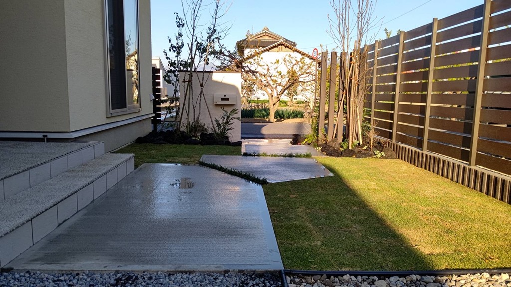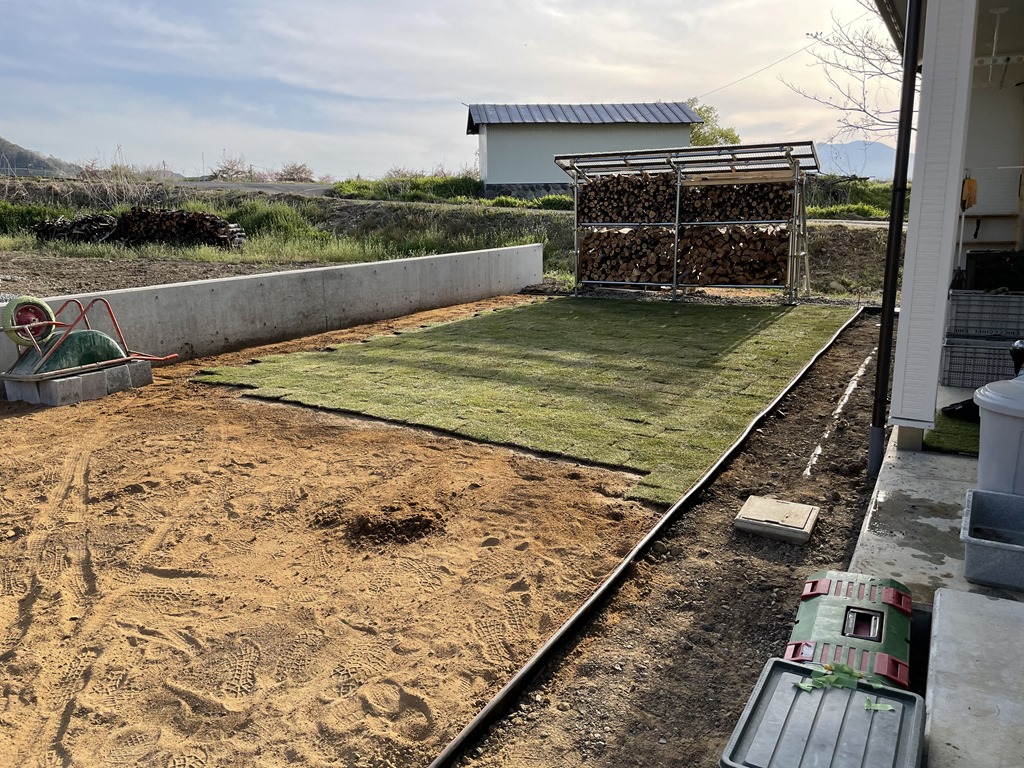 また別のお宅では高麗芝を貼りました。最近入社したKさんにも手伝ってもらい、めちゃくちゃ頑張ってもらえたお陰で二現場の高麗芝を貼ることが出来ました!お疲れ様でした!!