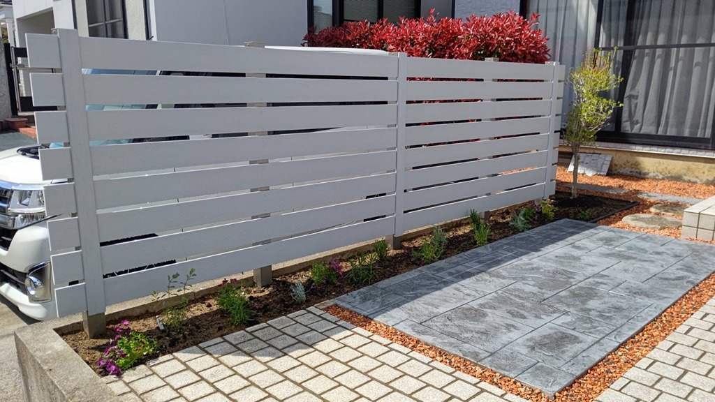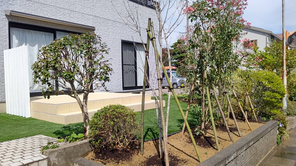 こちらのお宅ではソヨゴをと駐車場際の植栽スペースに下草を植えさせていただきました。
