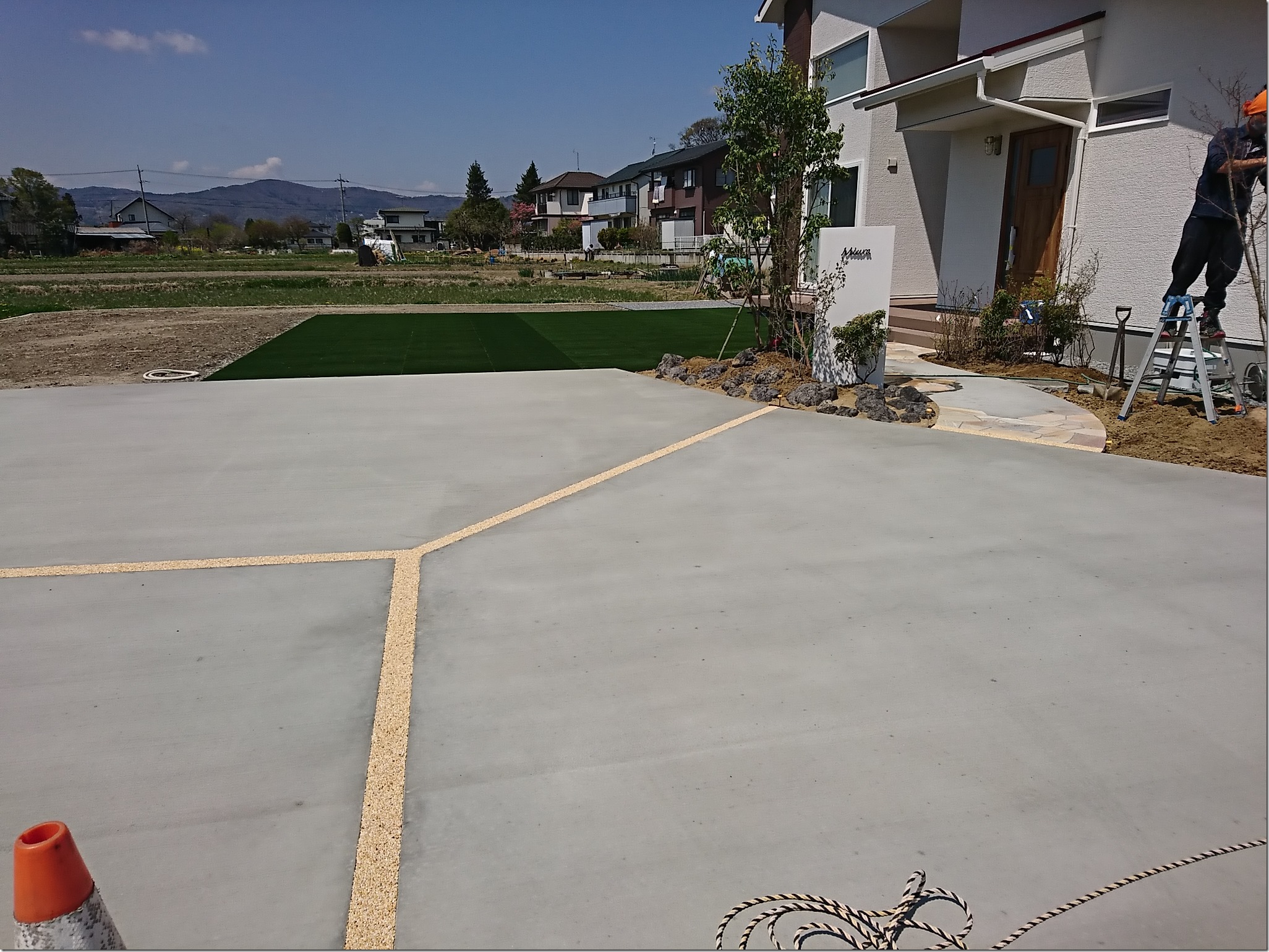 ファイバーレジン・芝張り・土間打設 4月20日(水) こちらのお宅では、ファイバーレジンの敷き均し作業をしました。 土間と土間の間に色が入ると雰囲気が変わって良いですね! こちらのお宅では、芝の貼り付け作業をしました。 緑色が入ると雰囲気が変わって良いですね! こちらのお宅では、土間の打設作業をしました。 こちらのお宅はまだ、土間の打設が残っているので頑張っていきます! 今日も今日とて暑い一日でしたね… 今までの春と比べても暑いような気がします 長野市,外構、エクステリア