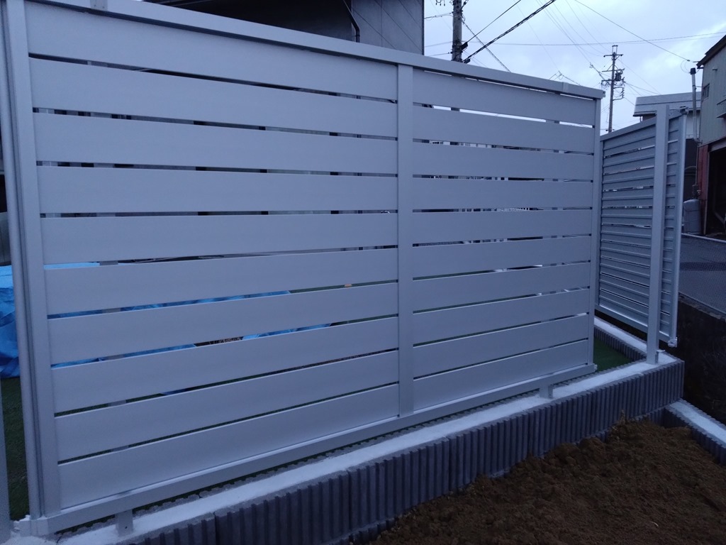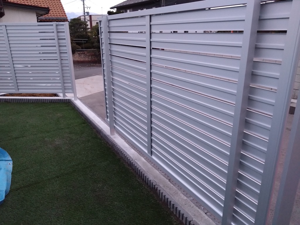 フェンスab施工、アプローチ目地 12月16日(月) この現場では、フェンスの施工、人工芝の砂入れ、インターロッキングのアプローチの目地入れを行いました。フェンスの取り付けは途中までで、加工する部分が残っているため、寸法を細かく図りながら作業をしていく必要があります。人工芝の砂入れは、人工芝を砂の重みで押さえるためのもののため、ふるいで砂をふるいながら全体に撒いていきます。 アプローチの目地には、珪砂と呼ばれる目の細かい砂を流し入れていきます。道路側以外は見時の側面がふさがっていないので、コーキングで蓋をしてから目地に珪砂をいれていきます。 長野市 塩尻市 松本市 外構 エクステリア