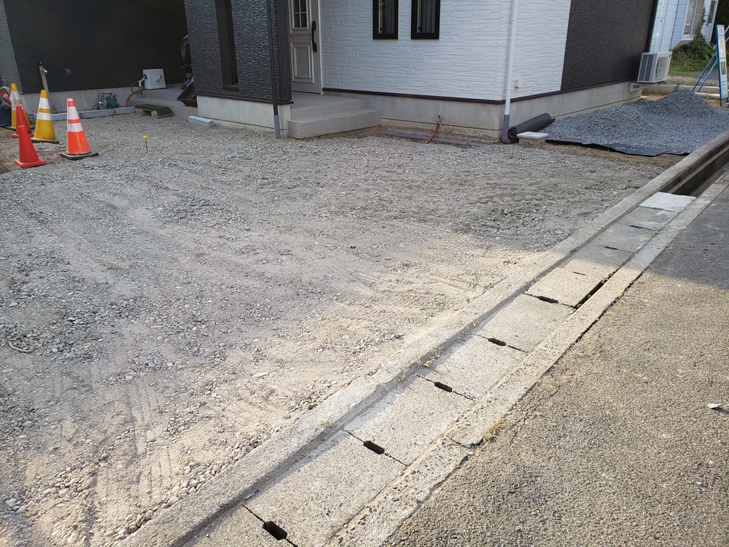 こちらのお宅では、砕石を搬入して下地を作る作業を行いました。