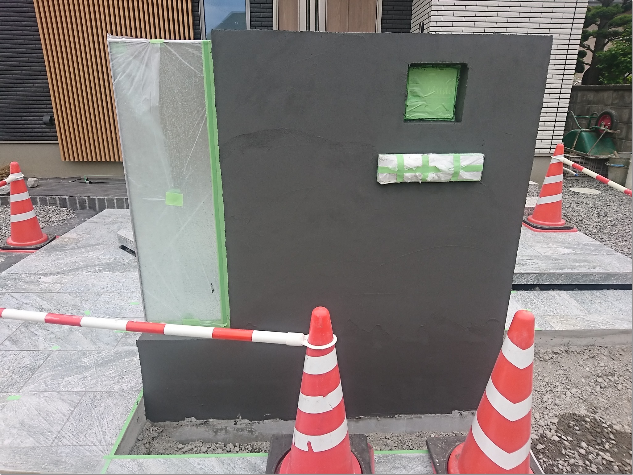 門柱の下地塗り作業。門柱のほとんどが白っぽいイメージですが、次の工程での変化をお楽しみに!