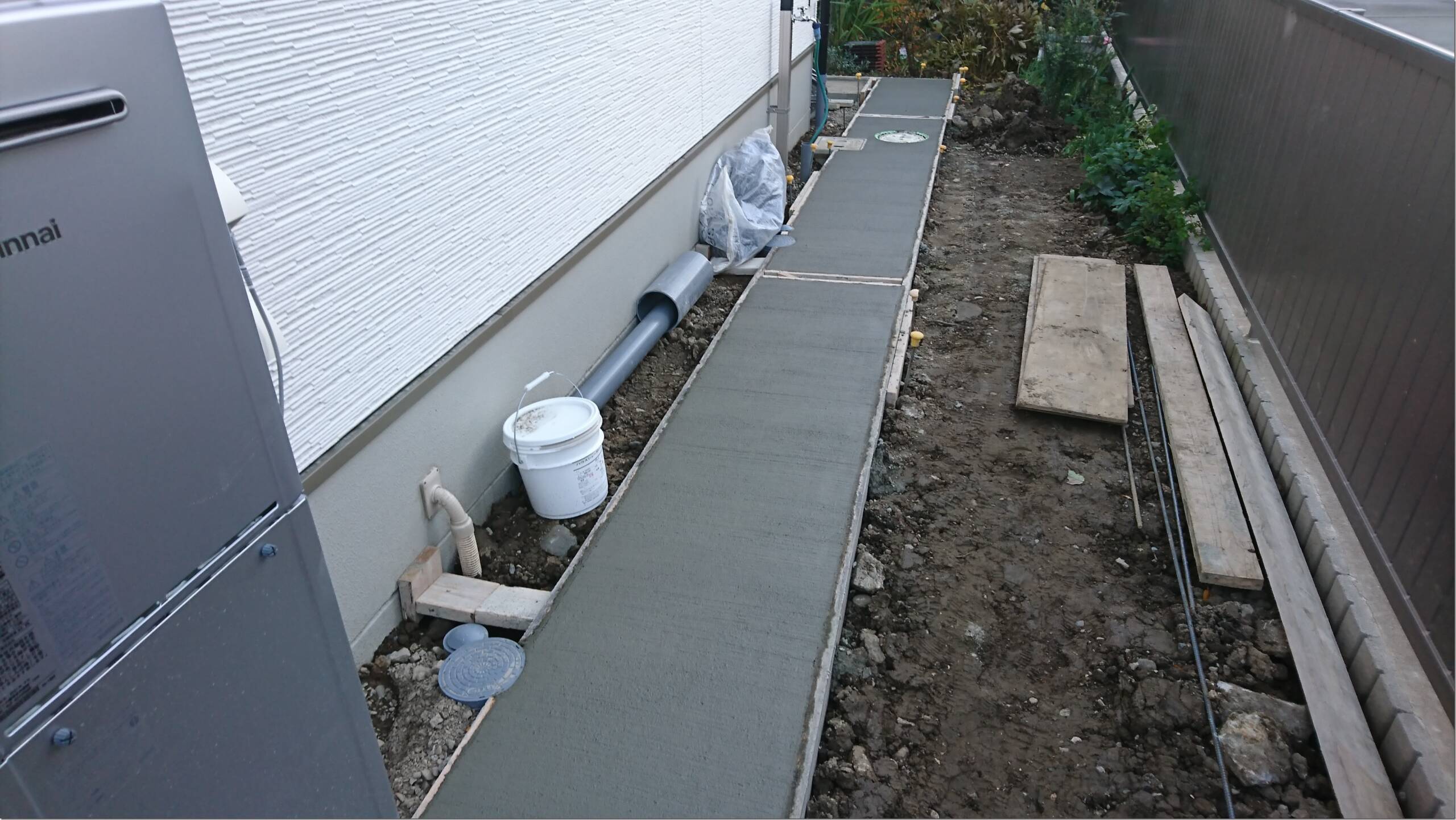 ポール立て、コンクリート打ち、寒い 11月10日(水) この現場では、土間のコンクリートを打ちました!一輪車を使って生コンを運んだのですが昨日の雨で地面がぬかるんでいてとても大変でした、、 今日は特に風が強く凍えながら昼ご飯を食べていました、。私は冷え性なので、これからもっと寒くなると思うとゾッとしますが寒さに負けず頑張りたいと思います。明日は暖かくなってくれることを願います。以上です。 長野市外構エクステリア