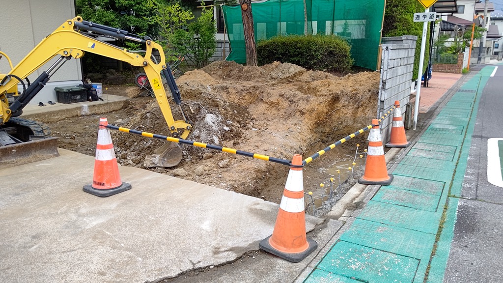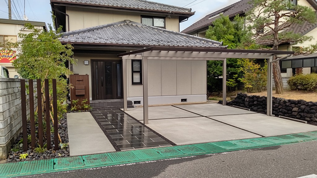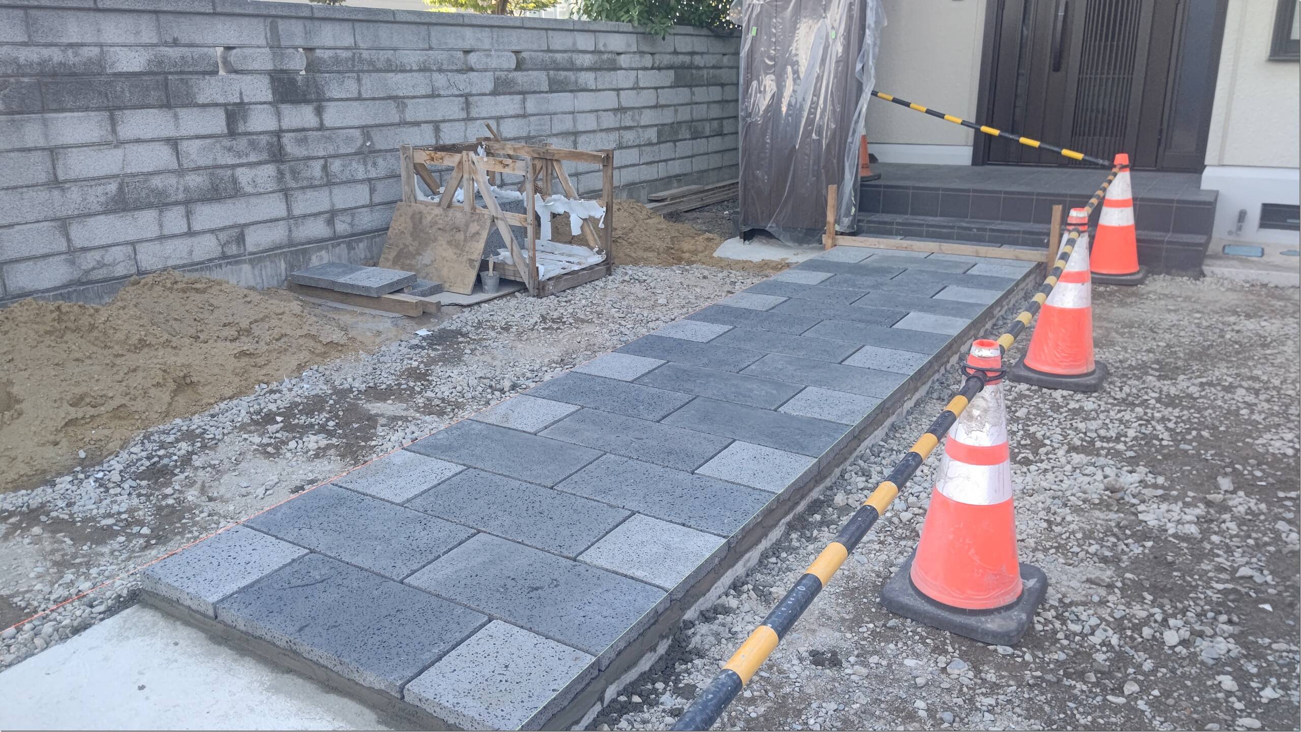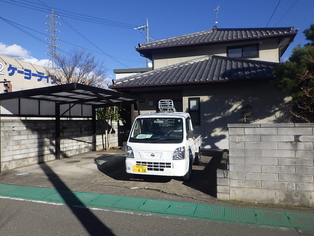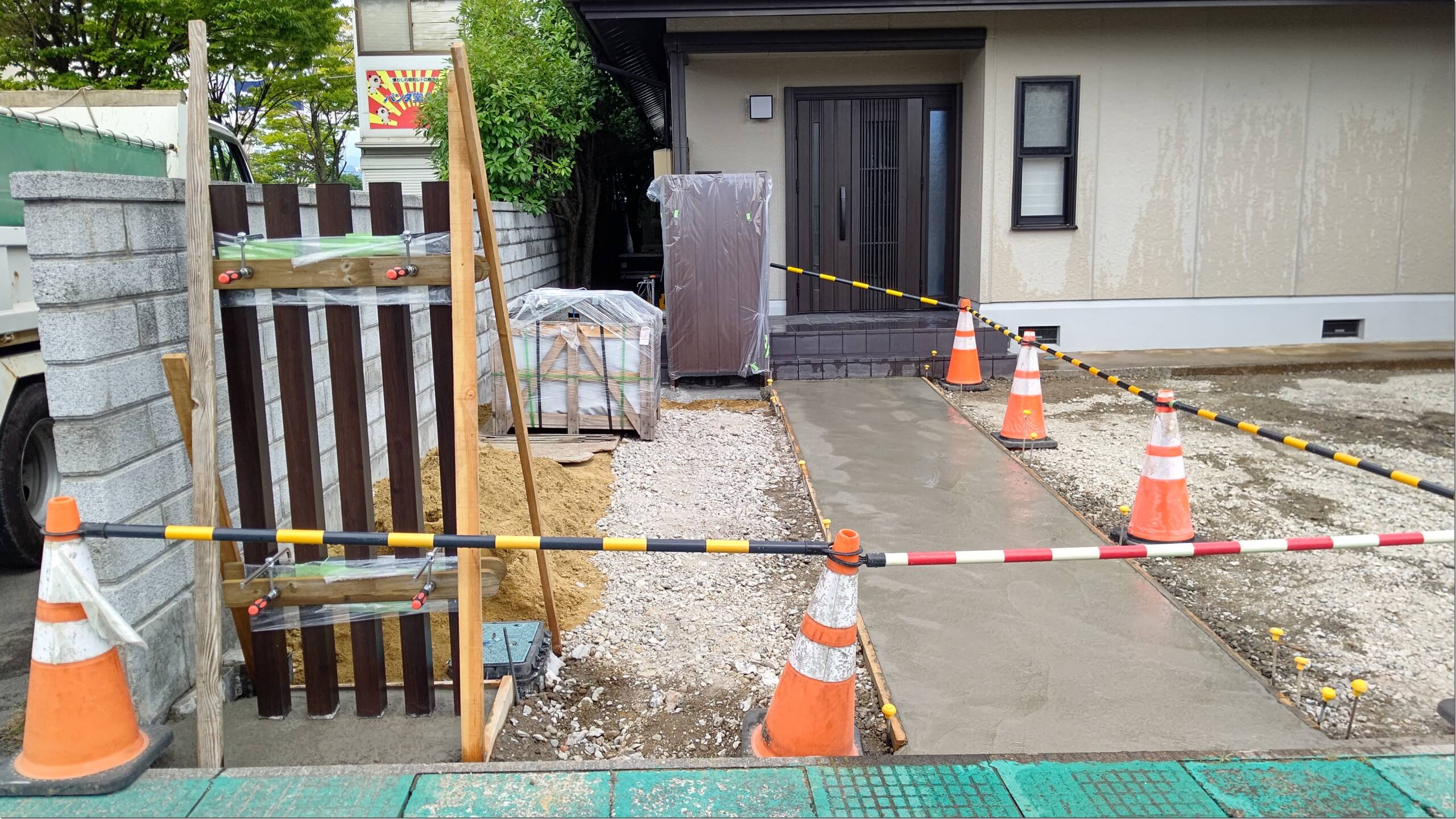 各工種の作業風景…カーポート、駐車場の間口を広げ、既存の古くなった土間の解体から工事は始まりました。