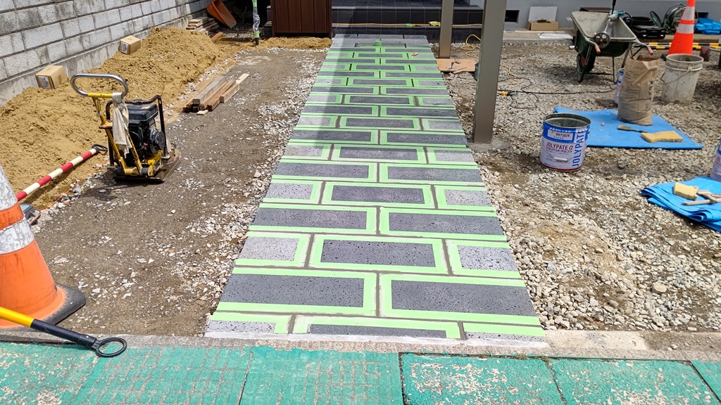 目地詰め。ラバーズロックは、無数の穴があり、セメントで汚さずに穴を埋めないよう慎重に作業。