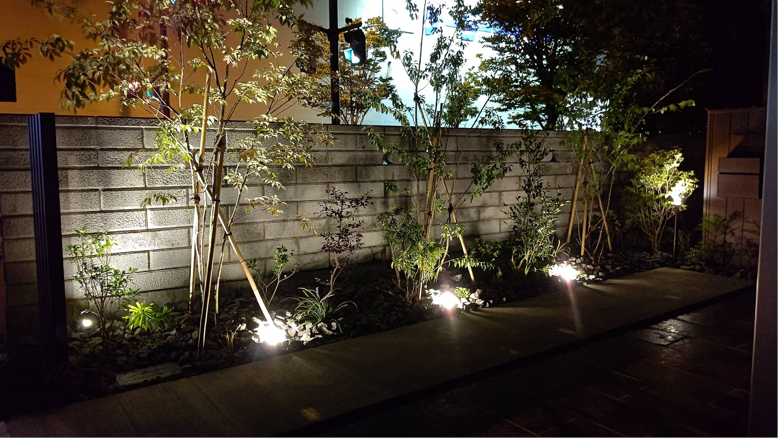アオダモ…ソヨゴ…ツリバナや草花を植え付け…照明を設置。