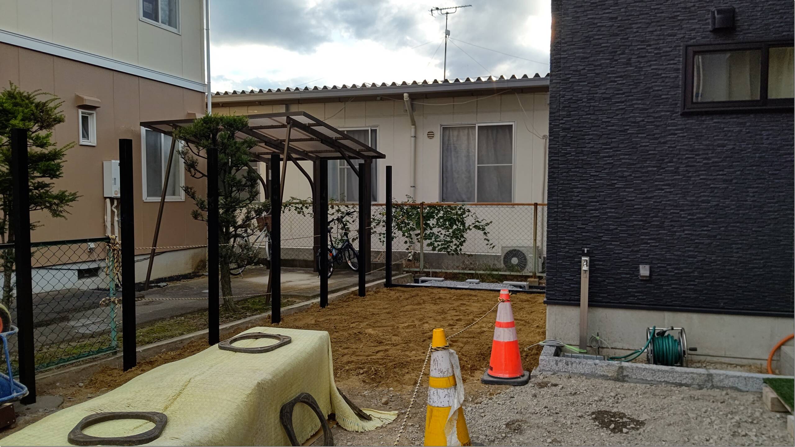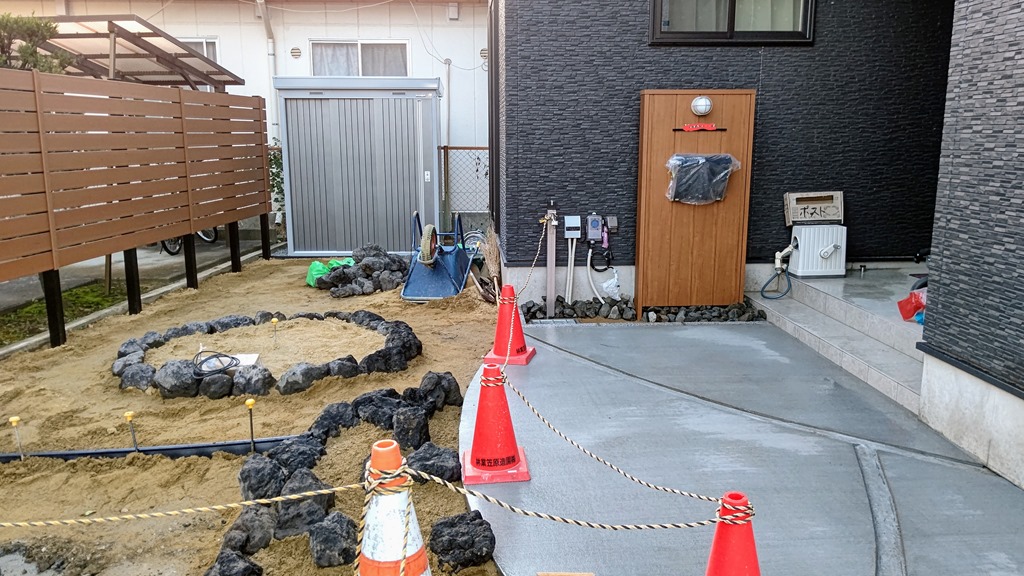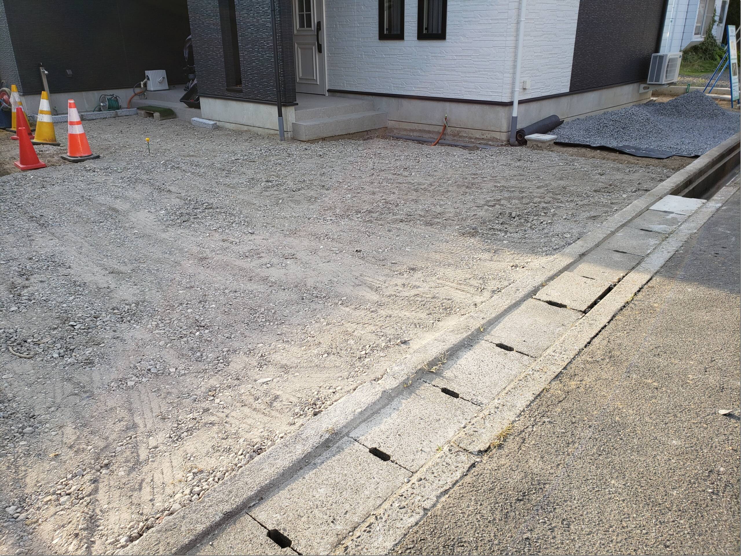 こちらは、先日完成したお宅の外構工事流れをお伝えします。写真は着手して数日のものですが、砕石敷きと雑草に埋め尽かされた敷地でしたが…