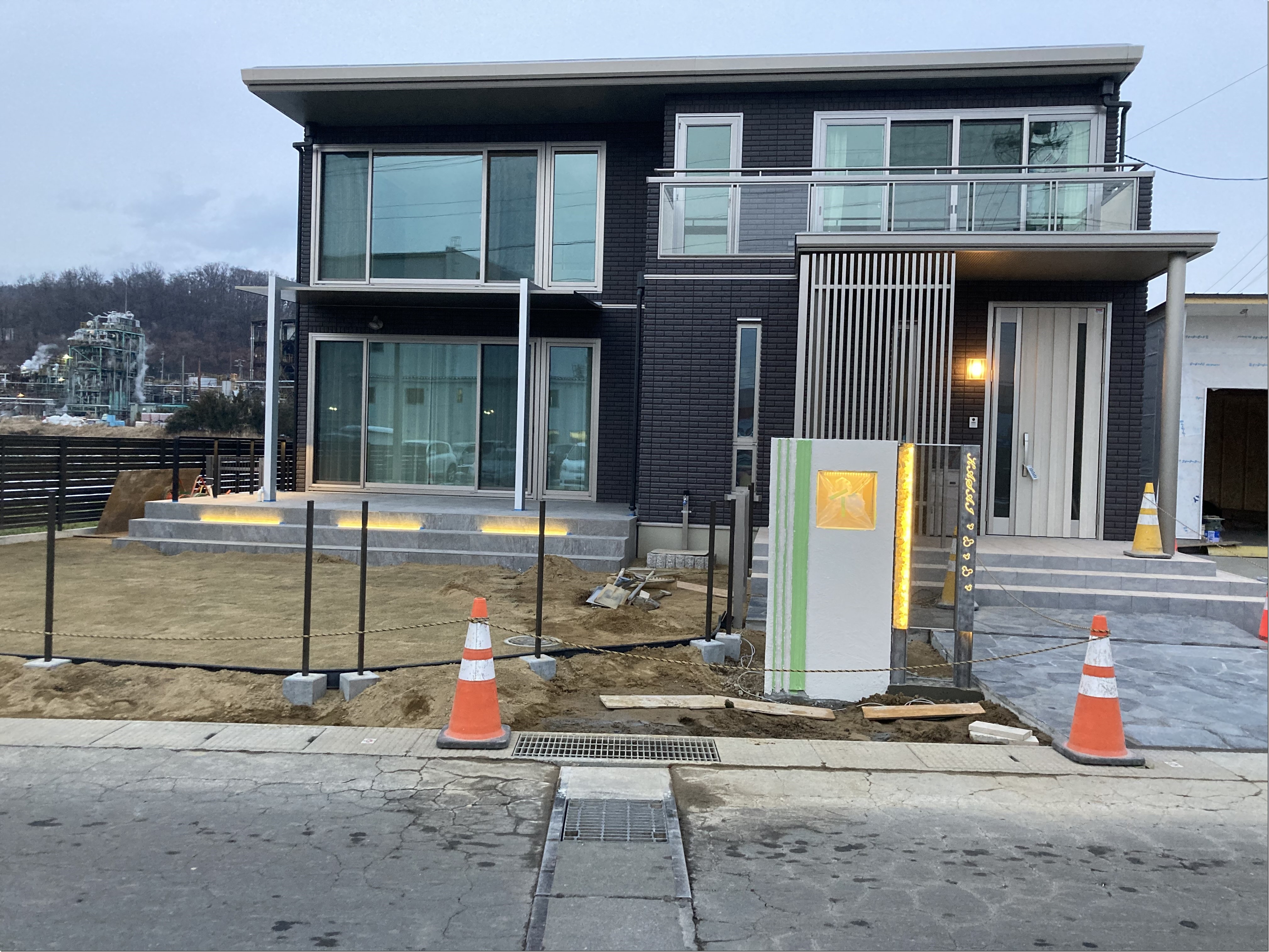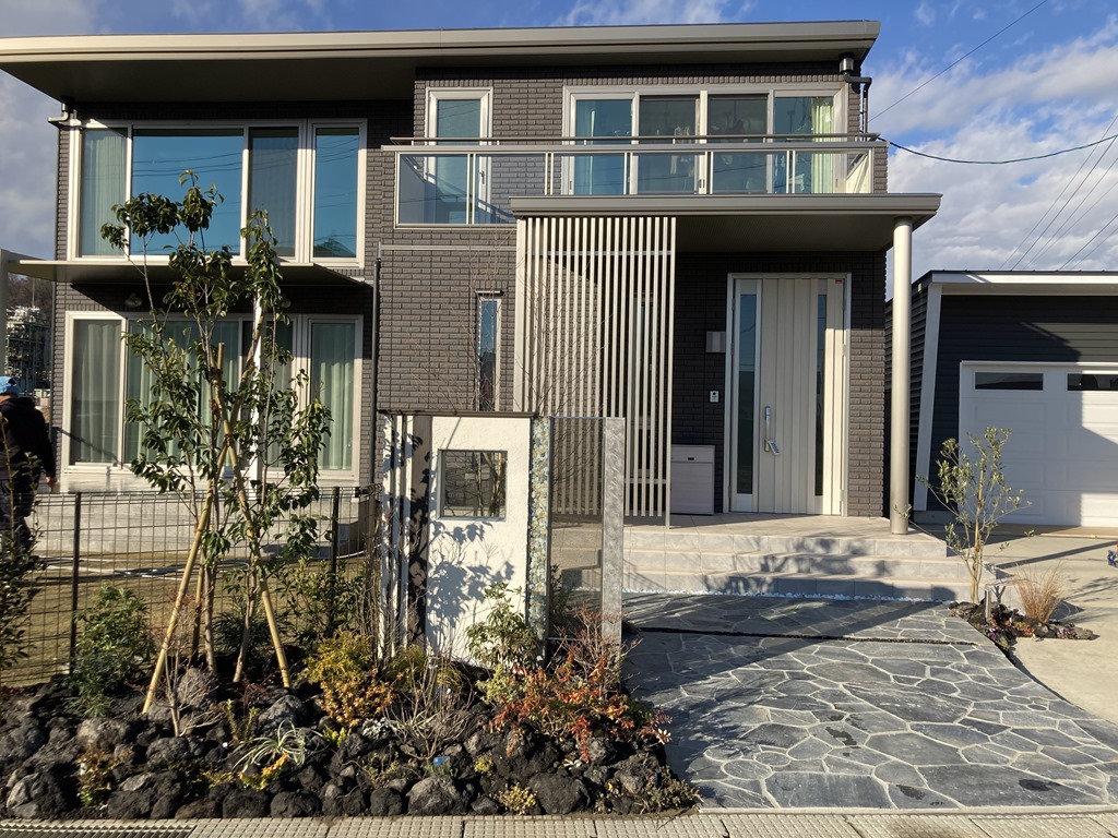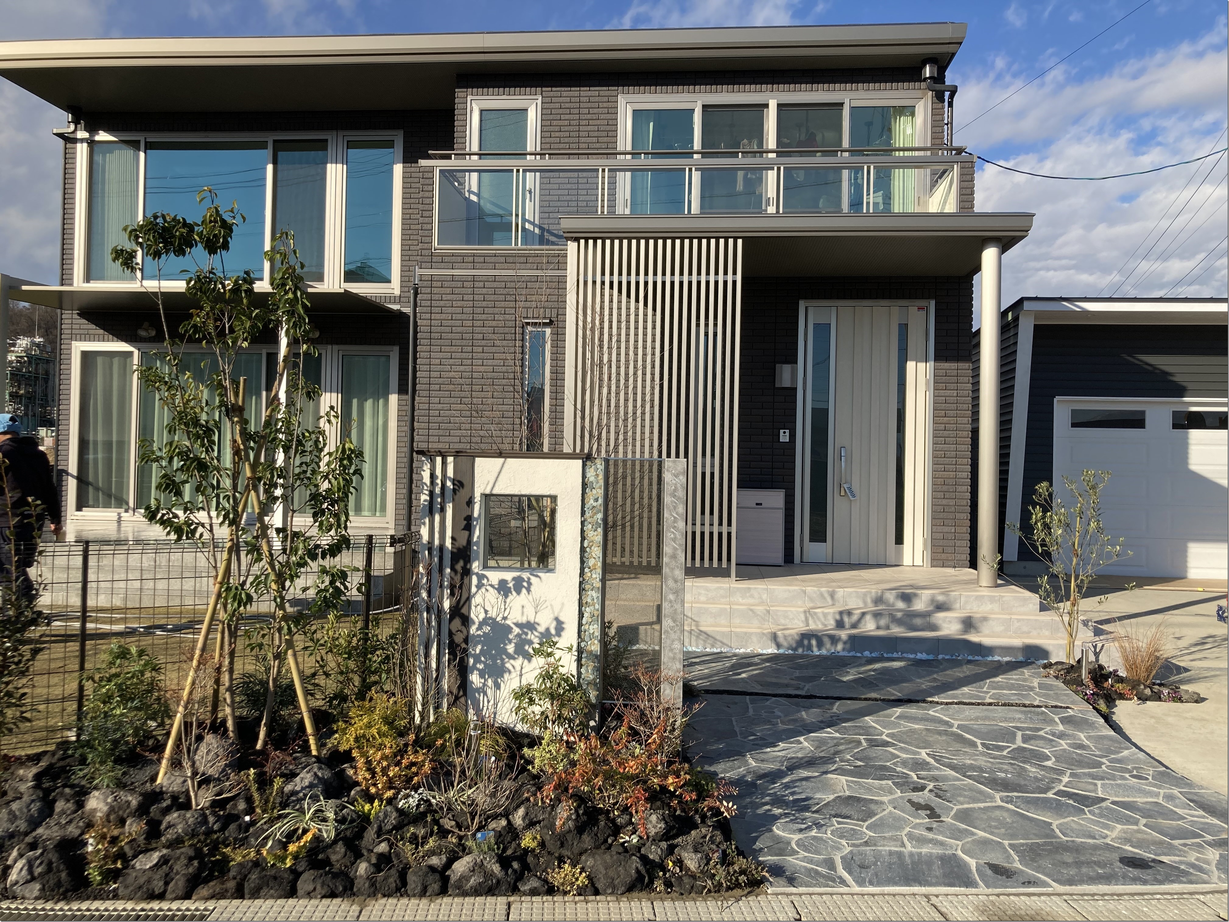 門柱の笠木を取り付け、植栽の仕上げをしてからのひたすら掃除をして今日で完成したお宅です!!