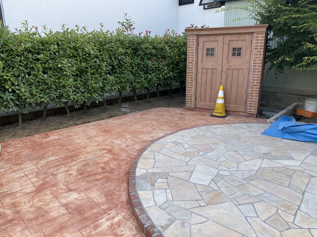 カンナ物置…ベスロック…猛暑の中 6月30日(木) 乱形石貼りテラス、スタンプコンクリートの先にカンナ物置が登場しました。 休日には、カンナのの前にテーブルを置き、ゆとりの時間を過ごしたくなるカンナのある生活が楽しみですね! ベスロック積み、汚れに強く、アンティークで柔らかな印象。色は、モカとマロンの2色。目地はホワイトセメントを使用し、くっきりとバランスも良く感じます。 …雨の日々もないまま、いつの間にか梅雨明け。初夏どころか、猛暑の日々。 今の季節…梅雨頃は、雨が似合うアジサイが綺麗に咲きますが、毎日の暑さで季節の流れが狂った感覚。 でも、綺麗に咲いていました。涼しく感じればなと… 長野市、外構、エクステリア