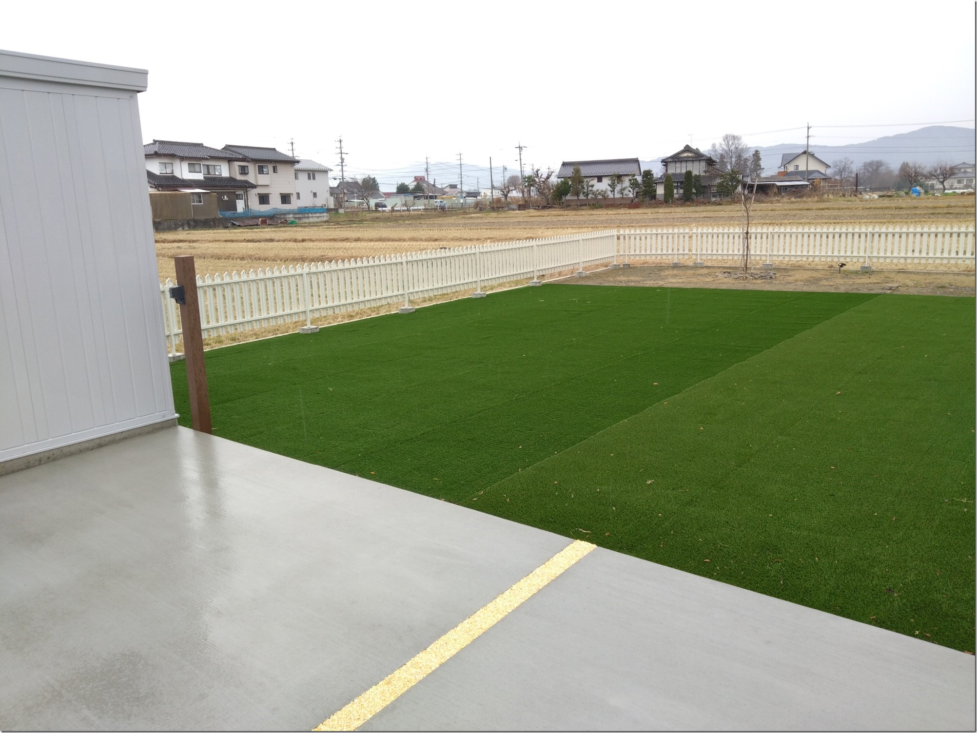 朝から雨降りの今日は土間スリットのファイバーレジンの養生が終わり、全体清掃をして完了しました。トレドでは工事が始まる以前よりも綺麗に掃除して終わらすのをモットーにしています。前回施工した植栽帯の落ち葉清掃や枯れ枝の撤去や汚れなど隈なく見て回ります。人工芝帯も拡張したのでより一層広々とお庭で遊ぶことが出来ますね。将来を見据えた電気自動車の200V電源も設置しました。総評として道幅の狭い環境での工事になりましたが、お客様や近隣住民様の協力のもとスムーズに工事を進めることが出来てホッとしています。