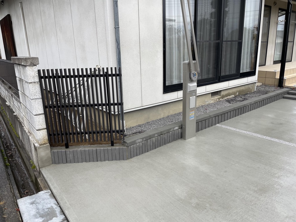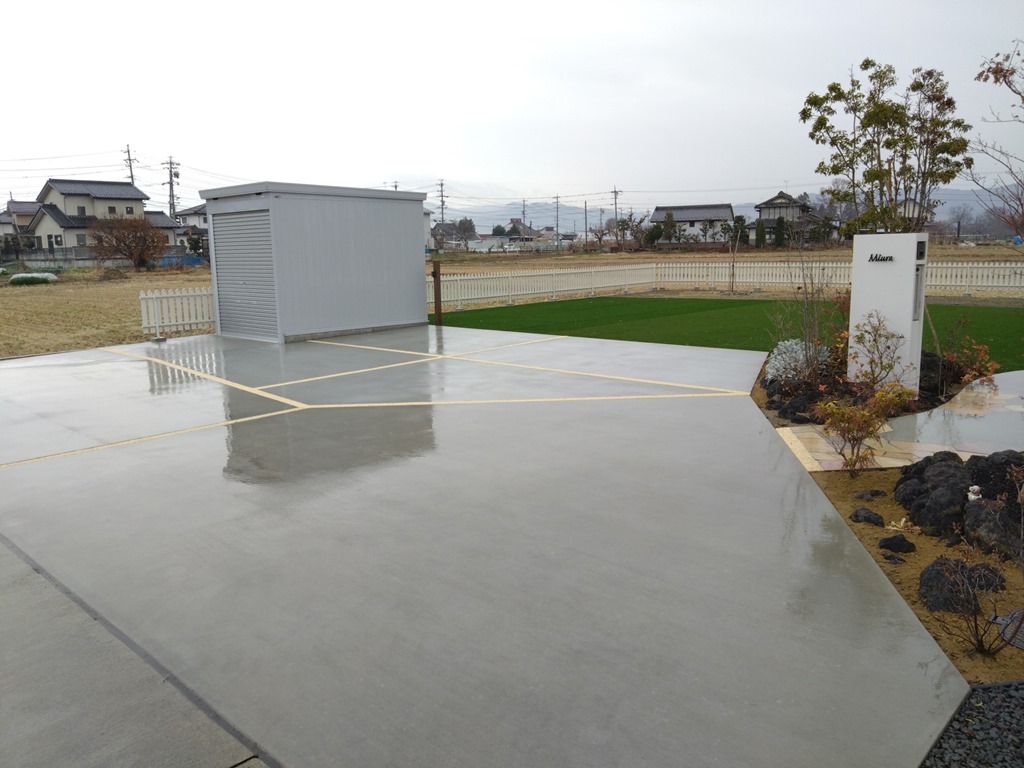 化粧ブロック上にラインスタイルをはりました。縦格子のため柱が2本立てられる範囲内で様々な幅のサイズに切り詰める対応が出来る商品です。今日の工事で完成した現場になります。詳細の画像はまた後日に。リフォーム工事であったので様々な現場努力もありましたが無事にお使い頂けると思います。車社会の長野では近年車庫スペースを増設したいというお問い合わせが増えております。我々も使いやすいお庭を設計施工を提案出来るよう努力して参りたいと思います。