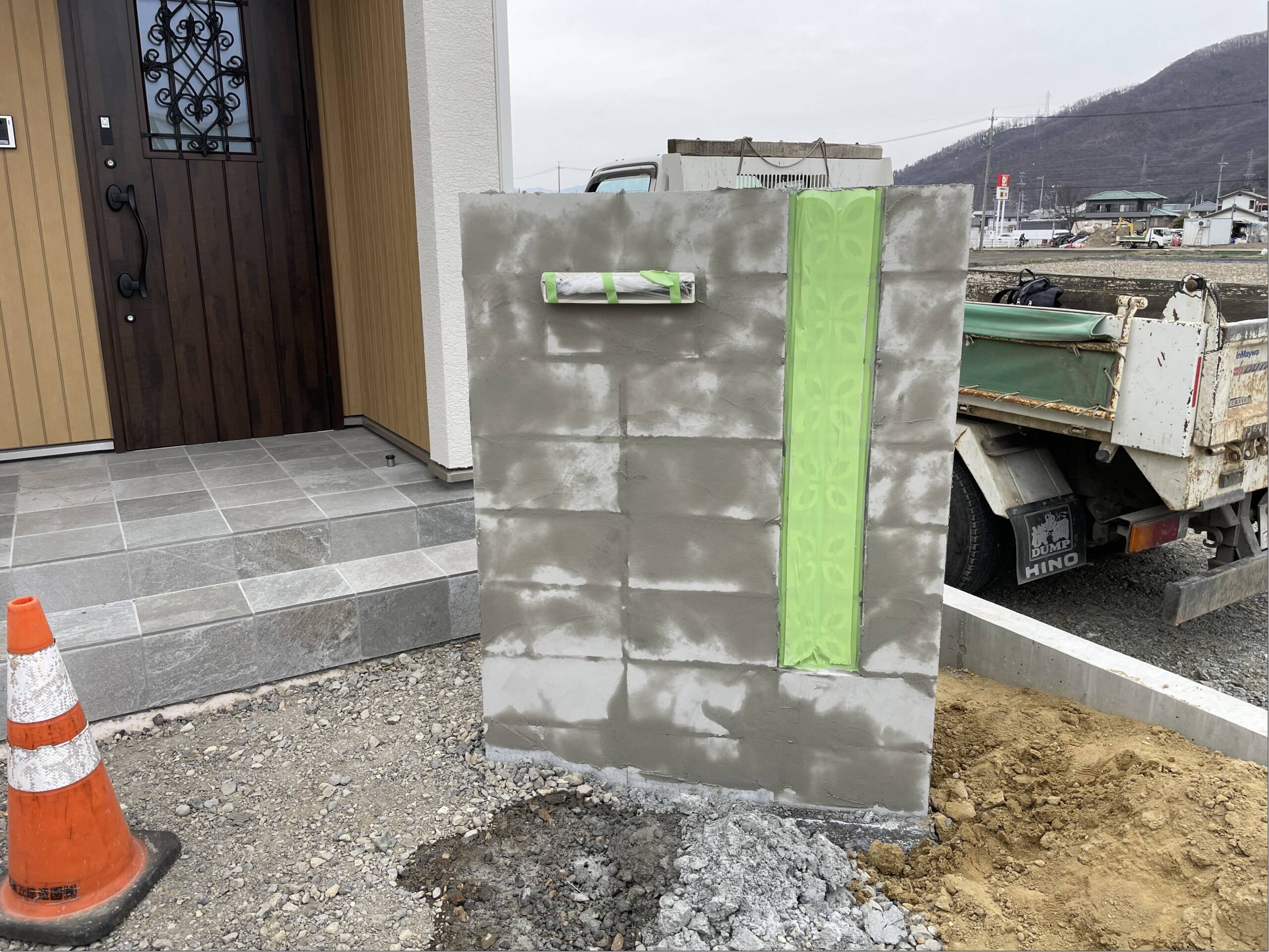 こちらのお宅では、門柱のゼロヨン塗りの作業を行いました。ゼロヨンを塗ってブロックの凹凸をなくしていきます、また後日仕上げ塗りを行いますが玄関前でとても目立つので綺麗に仕上げていきます。