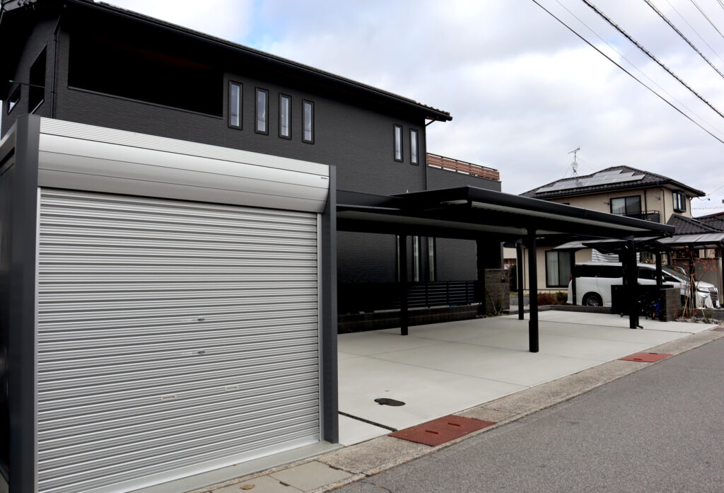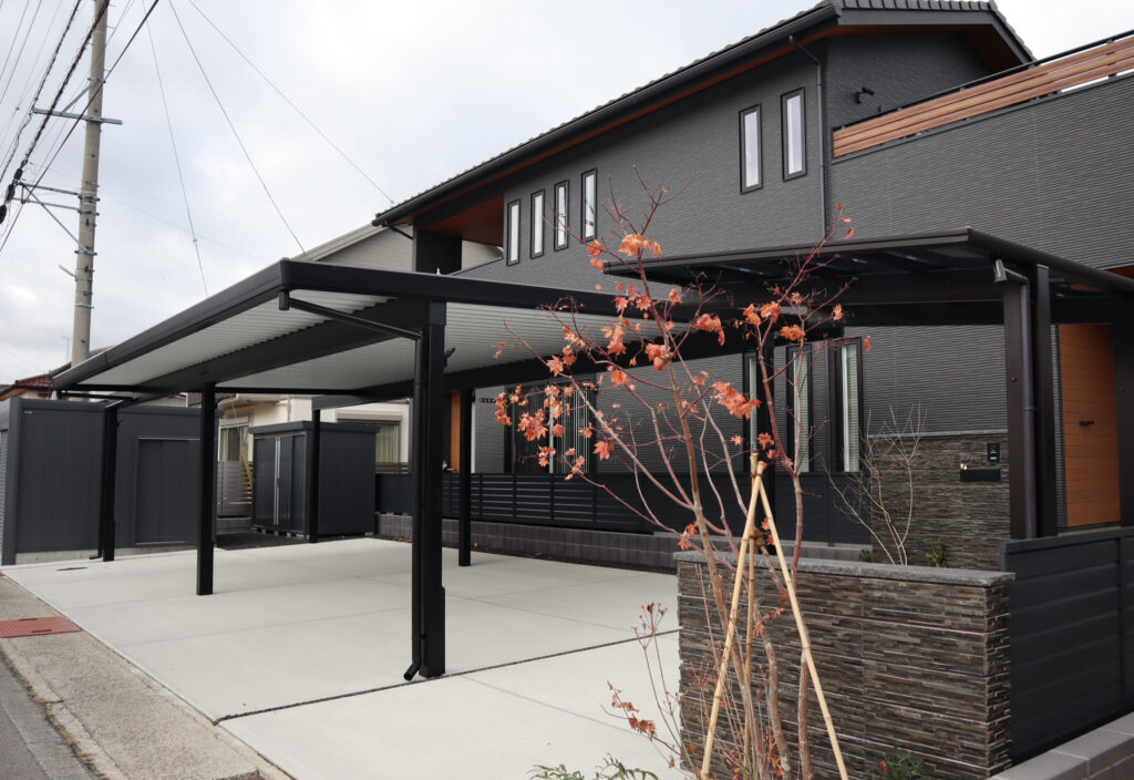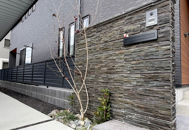 最近の完了現場より、外観・内観共にブラックを基調としたモダン住宅に、外構もブラック基調を
