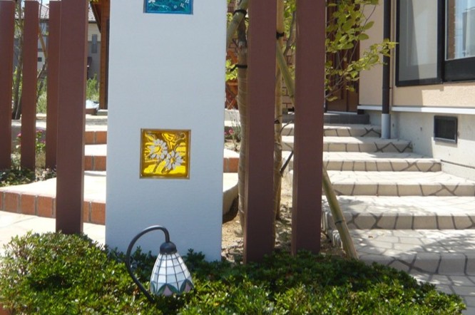 こちらはトレドで過去に施工したガラスブロックを使用した門柱です。
