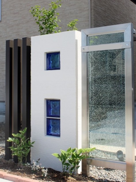 ガラスブロックは厚みのあるガラスで、存在感がありとてもおしゃれな門柱になります。