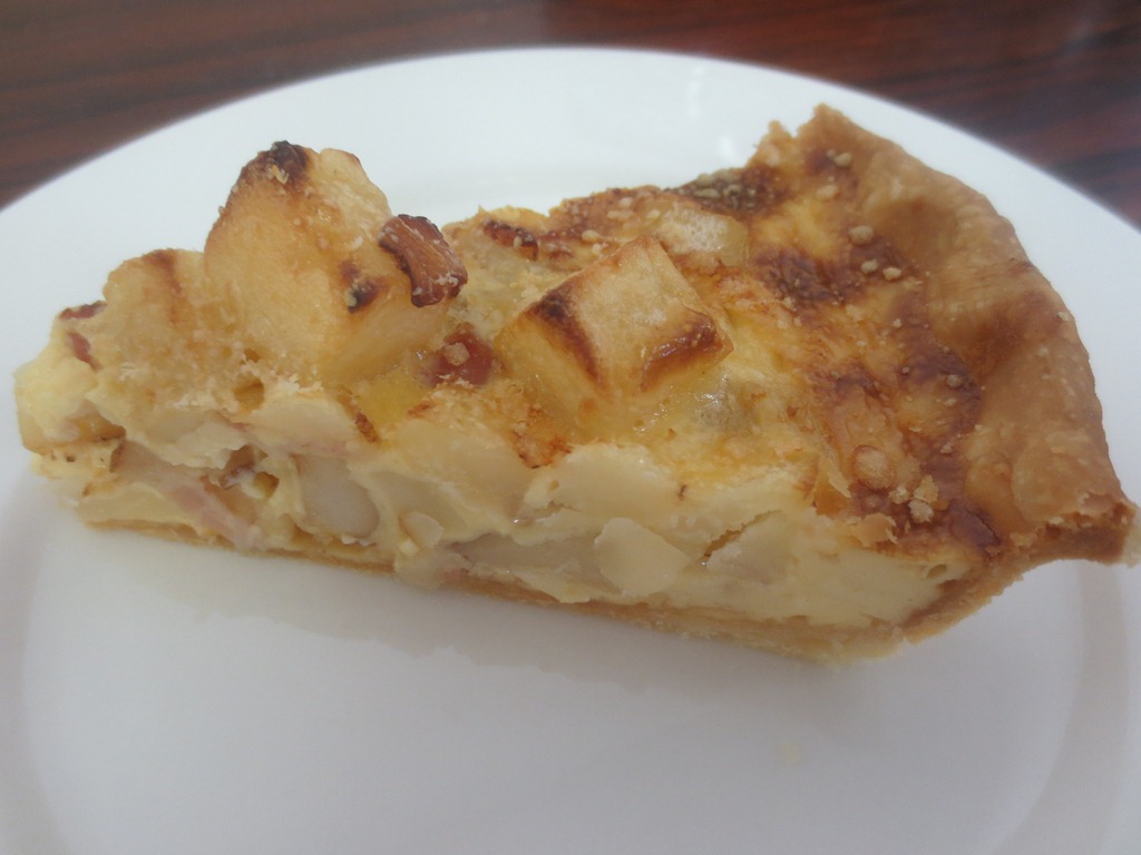 ジャガイモのキッシュです、洋食の料理の名前を知らないものが多いのですが、嫁さんが料理教室に行っているおかげで、随分覚えました、キッシュもそのひとつです。 料理教室で習うものは、手のかかるものが多く、共働きをしていると、作る時間がないので、記憶にあるのは、一品だけ、習ったものを家で作ってくれたと思います。
