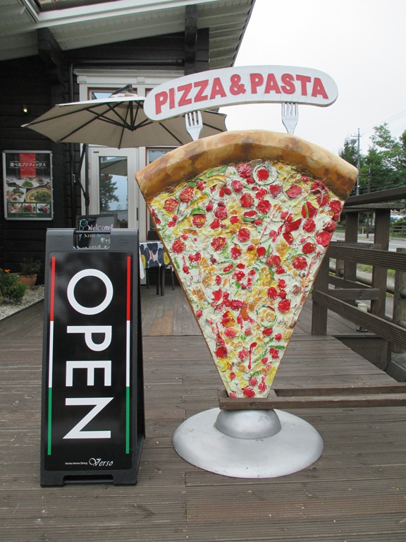 木製の階段を上って行くと、OPENの看板の横に大きなピッツァの看板、この看板を見ればピッツァには自信のある店だと思い、ピッツァは食べようと決めていました。