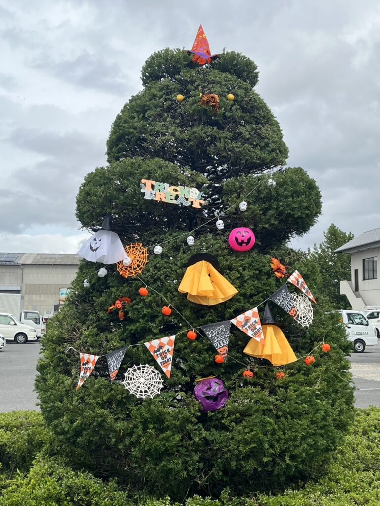 9月末に本社敷地内にある「イチイ」の樹を剪定して『ハロウィントピアリー』を制作しました。