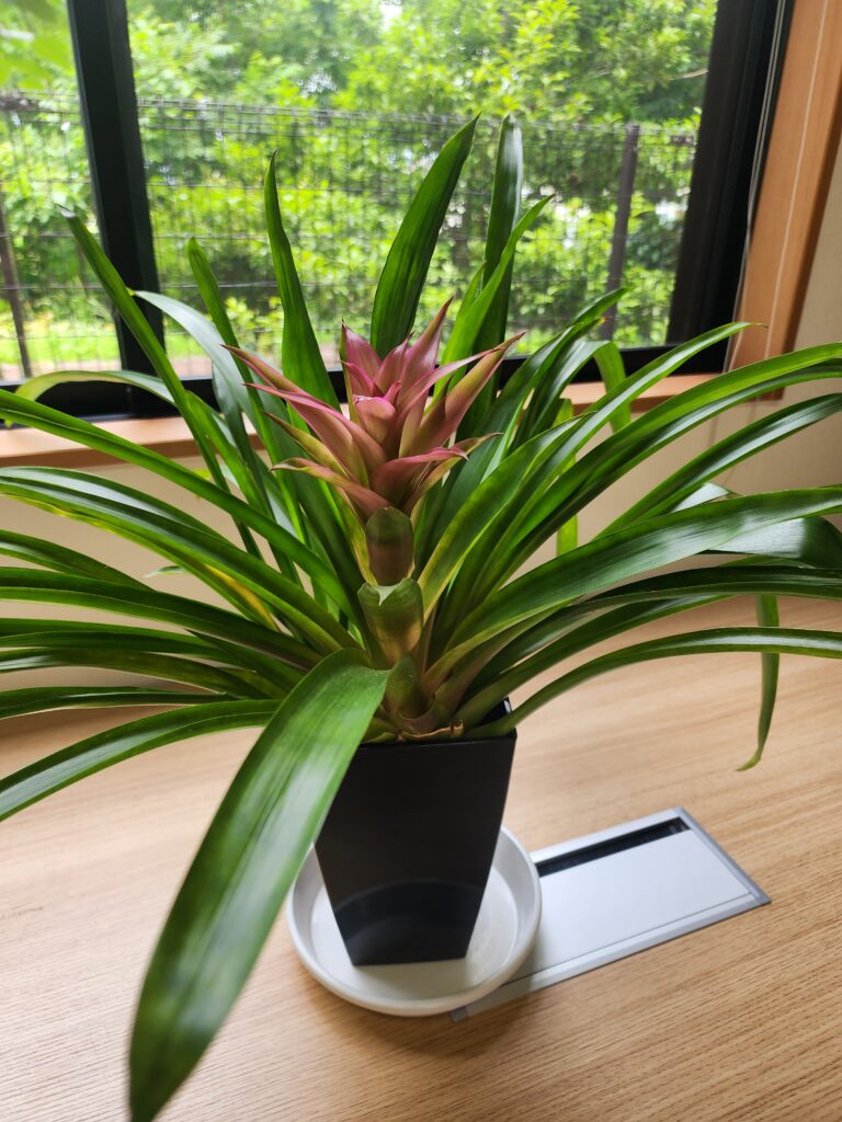 グズマニアは南アフリカ原産の観葉植物でパイナップルの仲間だそうです。