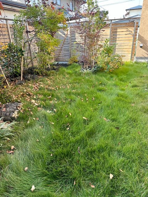 三年後に訪ねてみると、芝も植栽もぐんぐん成長したお庭の状態に!!