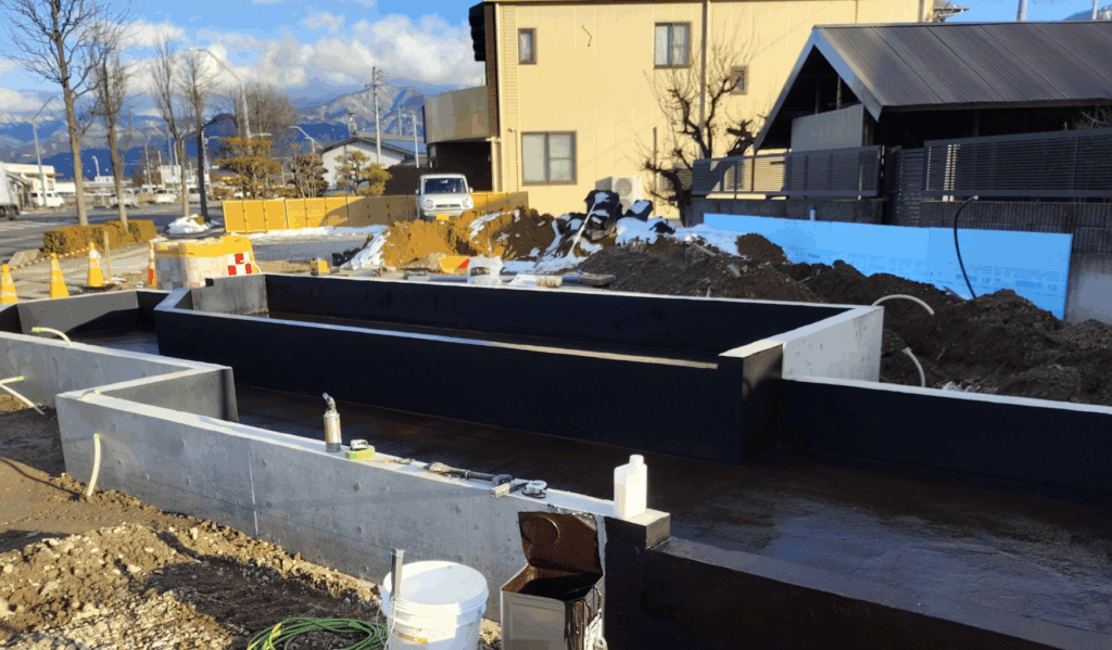 11月ごろには水盤工事が始まりました。