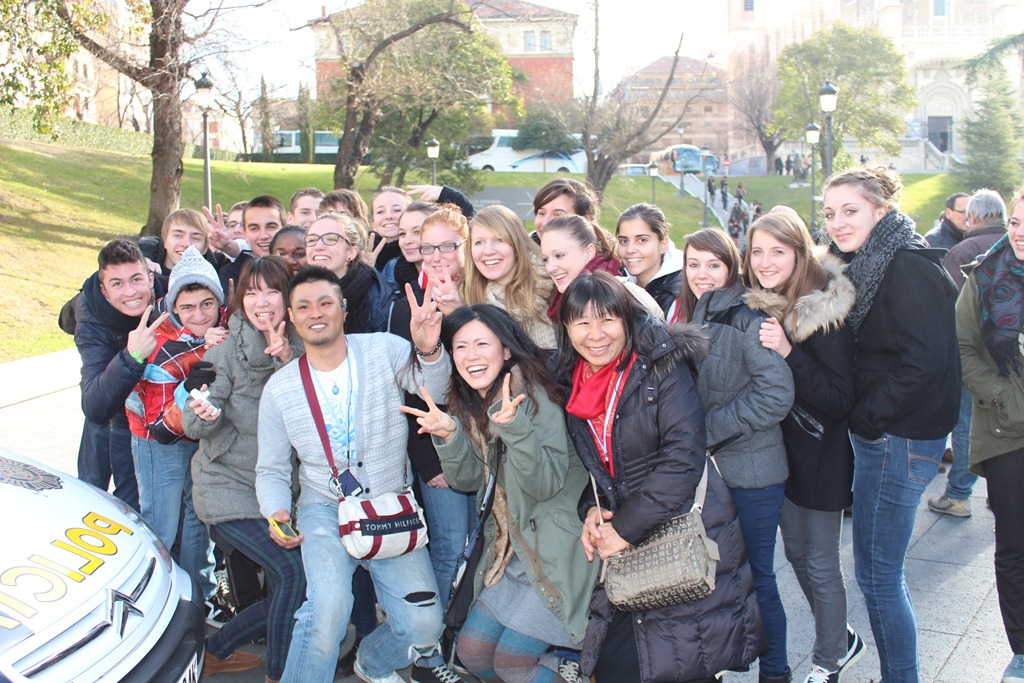 プラド美術館の前で入館を待つ地元の学生たち、スペインのイメージは陽射しの強い太陽と陽気な国民です。 当社のスタッフと一緒にカメラに向かってニコっとしてくれました。 言葉は全然通じていませんが、近頃のニュースを見ていると景気の悪さばかり報道されているので心配でしたが、とても明るい笑顔を沢山見る事が出来ました。