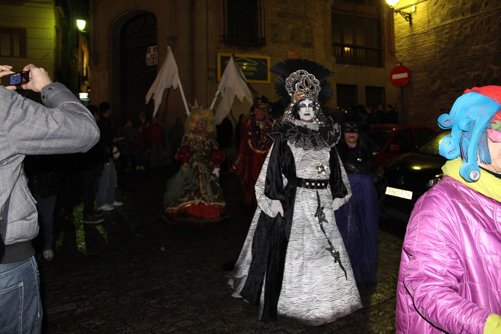夕食は、ホテルの地下にあるレストランでした、生ハムを見て喜ぶスタッフ、イベリコ豚かどうかはわかりませんが美味しいです、ただ私には少しショッパイです。食事が終わり夜の街に出ると、何だか分からなかったのですが仮想した人達の行列に後から楽器を鳴らす人達の行列、訳がわからないのですが楽しかったです。