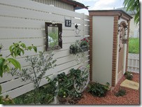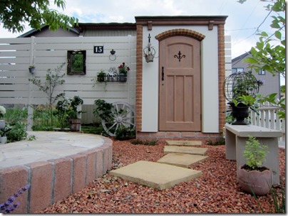 また、お隣の建物との間にはこちらもアイボリーをメインに、ライトブラウンとすりガラス調のポリカーボネート材の「ポリカパネルセット」で施工をしてあります。