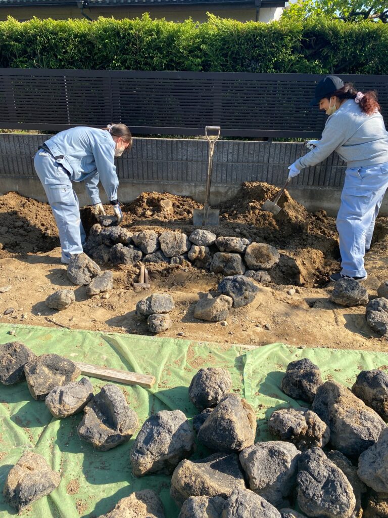 • 鉄平石 小端積み に サウナストーブ石積工事 | Flower Space K|愛知県のガーデンデザイン・施工・メンテナンス より