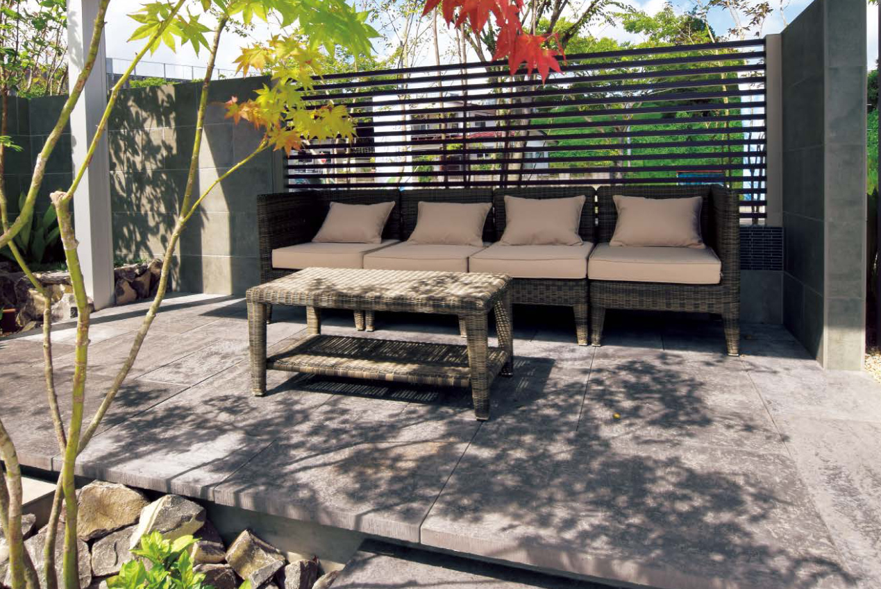 今回はタイルテラスも施工させていただいたのですが、境界とフェンス柱に出来るだけ近づけて、敷地を可能な限り無駄なく使っていただける様に計画をしました。ちなみにこちらのタイルはINAXのコンテⅡ、カラーはCON-1です。落ちついた色味で素敵に仕上がりました。
