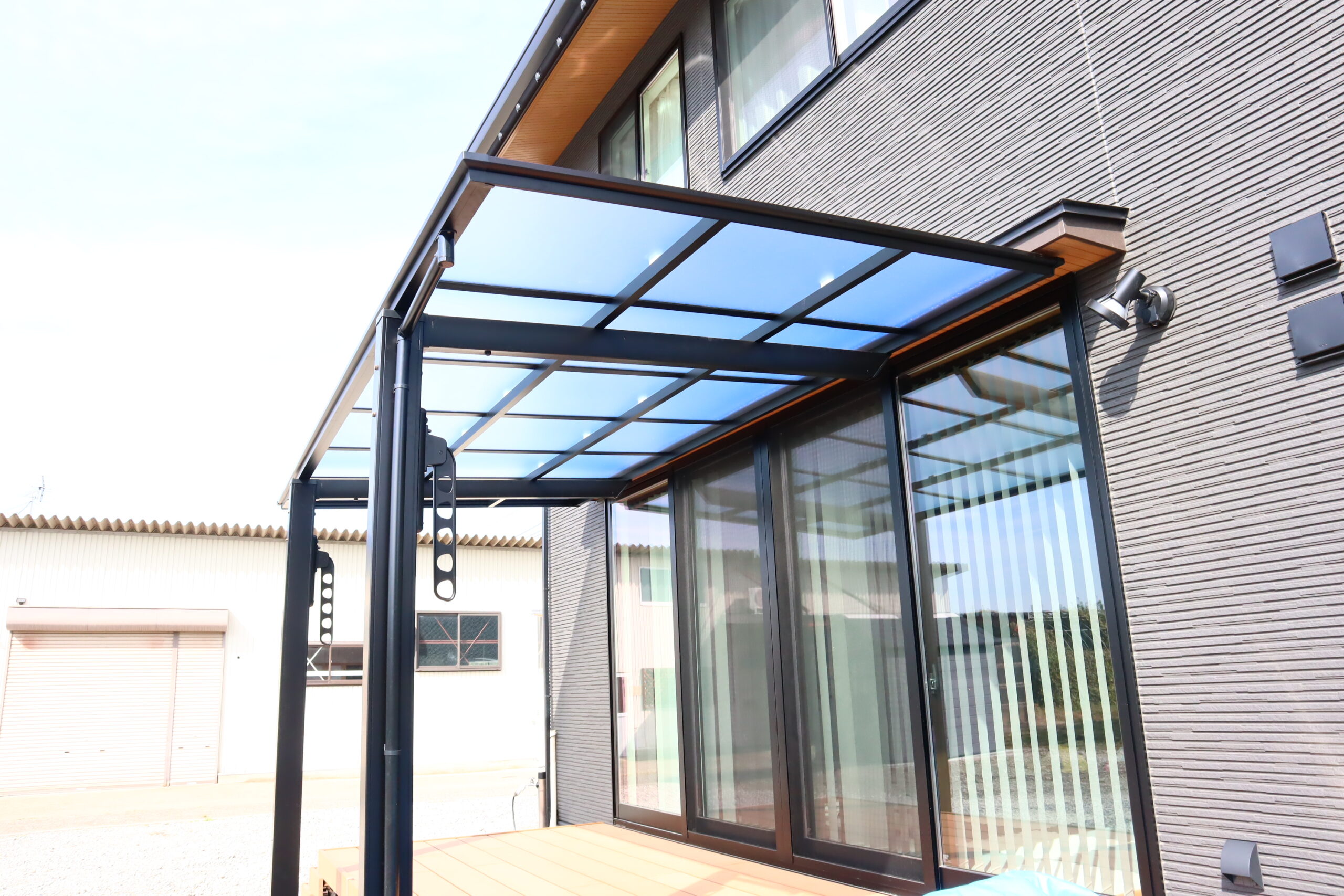 ソルディーポートは屋根材がポリカーボネートなので程よく光を通します。今回の様に玄関先にカーポートを設けても、暗くならずおすすめです。写真はクリアマットのポリカ屋根