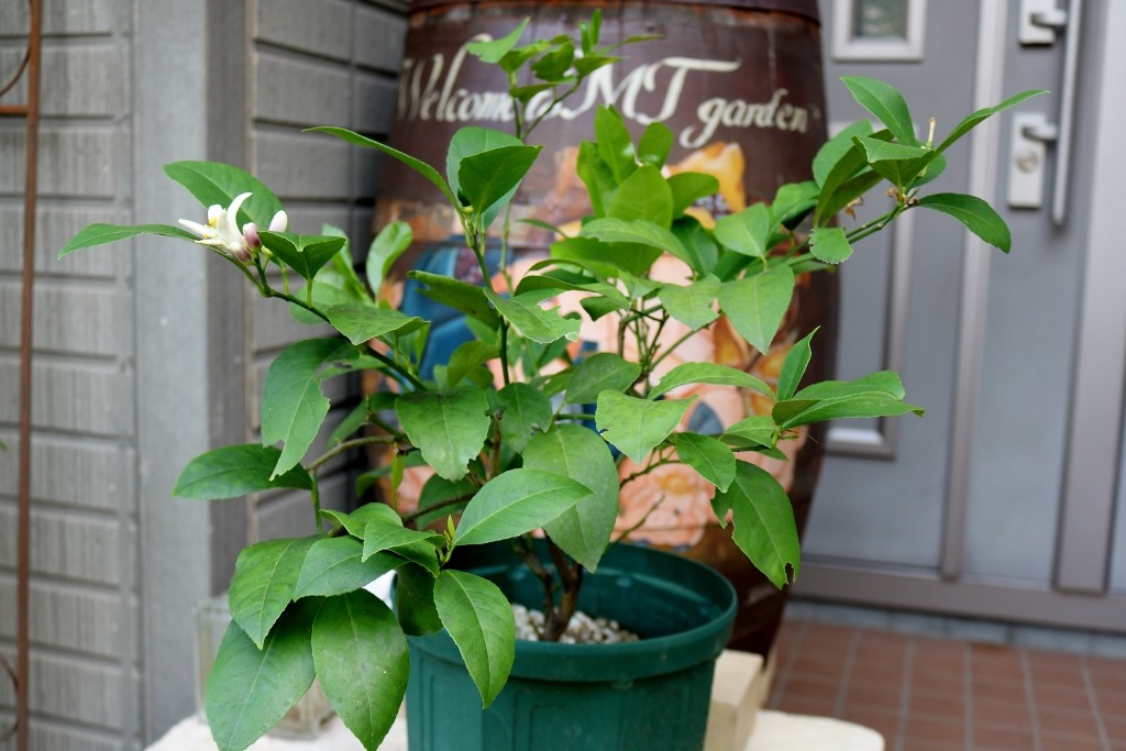 3年前に、友人から頂いた鉢植えレモンです。 頂いた年には大きな実を付け美味しくいただきました。 冬に花を沢山咲かせましたが、時が過ぎていくと大きくなる前に実が落ちてしまい、昨年は実を付ける事がなく、心配していたらお8月に入ってから花を咲かせ花が散った後に小さな実が今では4個ほど、花もまだ幾つかあるので、もう少し実が増えそうです。自宅になるレモンの実を完熟させてから食べると、とてもジューシーで美味しいです。